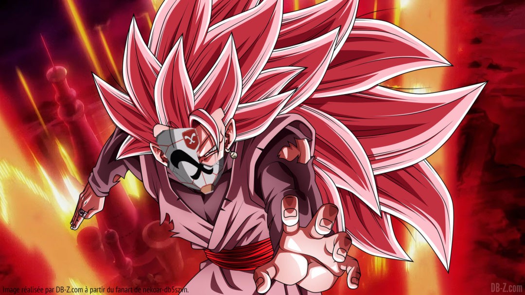 L’origine de cette forme extraordinaire remonte à l’apprenti Kaioshin Zamasu, qui, par une série d’événements inhabituels, s’est emparé du corps de Son Goku. Il est devenu Goku Black, et c’est ainsi que naquit le Super Saiyan Rosé, une transformation dérivée des Saiyans mais empreinte d’une essence divine. Dans Super Dragon Ball Heroes, Goku Black (ou une version alternative du multivers de Dragon Ball, on ne le saura jamais) est revenu sous les traits du « Saiyan au masque écarlate ».