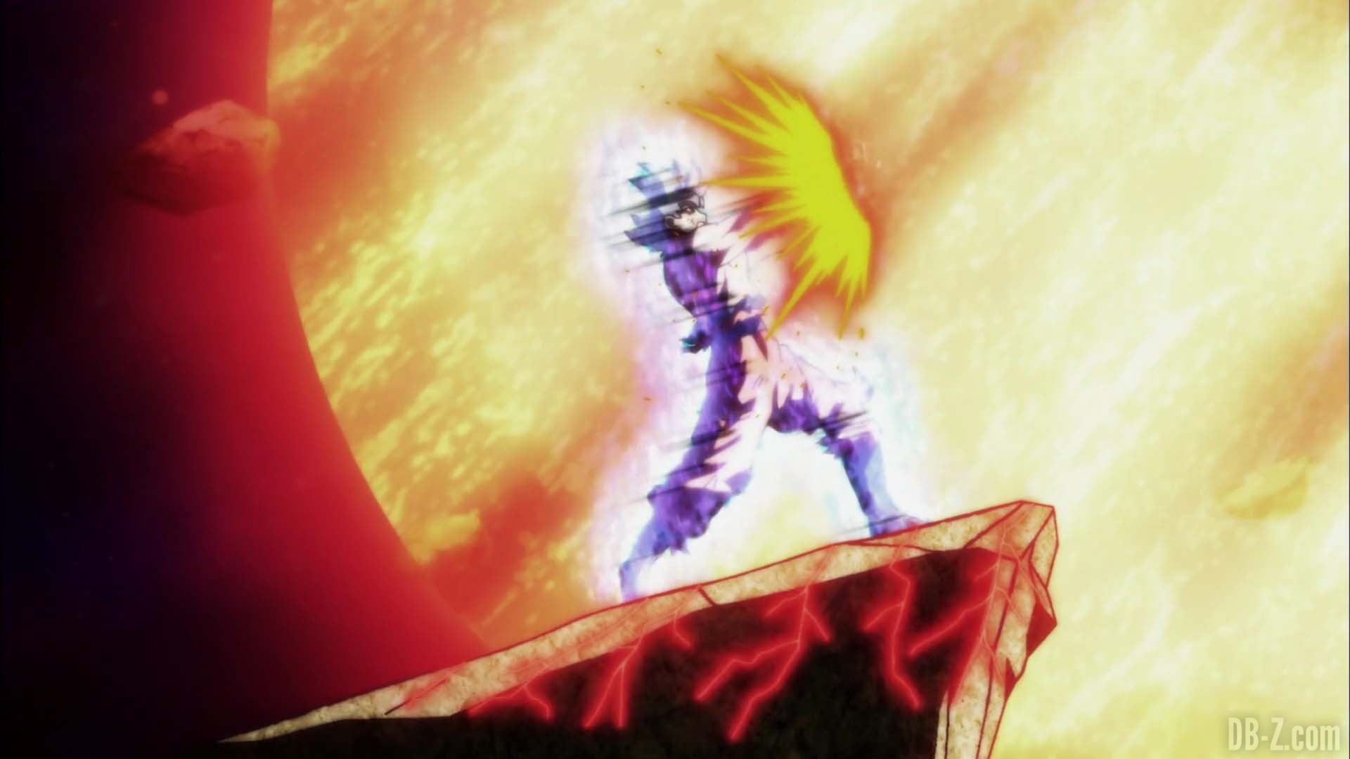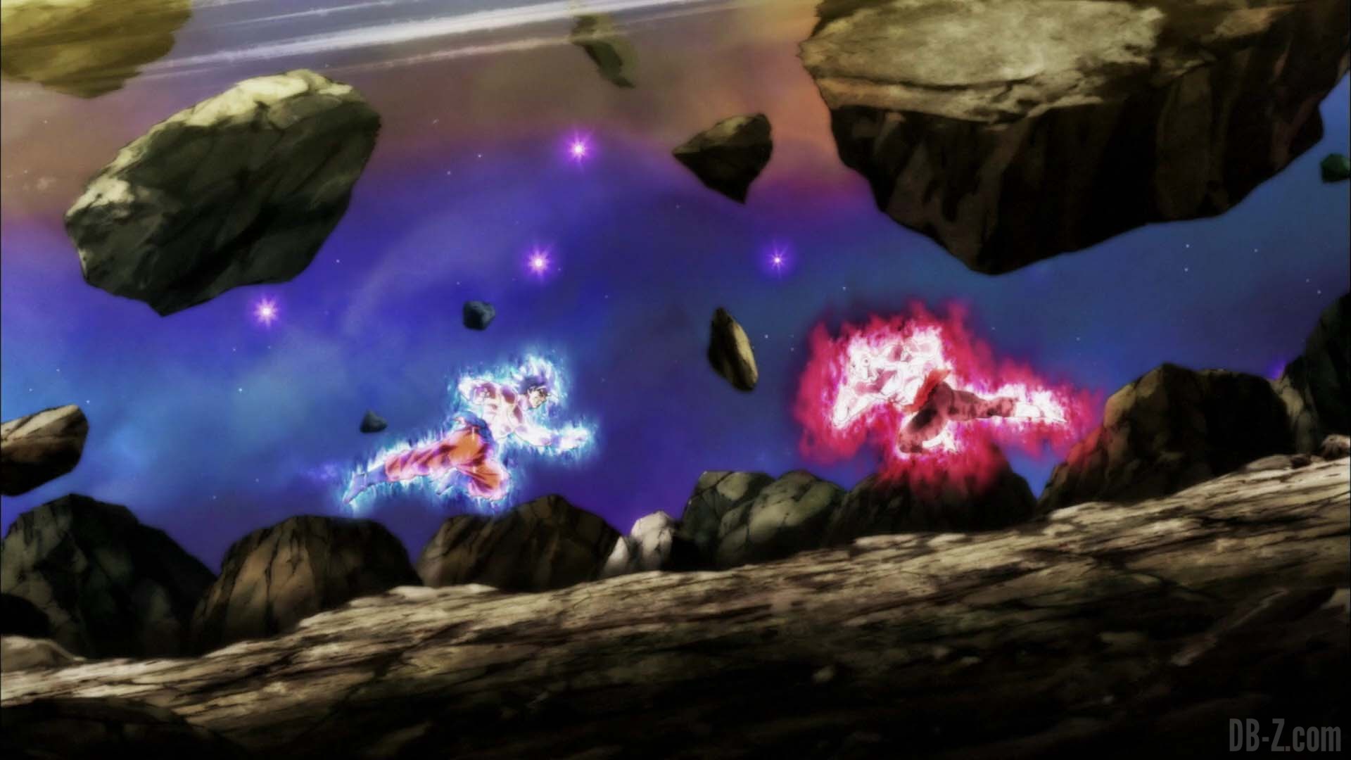 Cet épisode s’intitule « Le plus grand duel de tous les temps ! Le combat ultime pour la survie !!« , et on ne nous a pas menti : il s’agit (peut-être) réellement du plus beau combat de tout Dragon Ball, visuellement parlant. On ne s’exprimera pas sur le fond de l’histoire, qui reste aussi creux que le noir des yeux de Jiren.