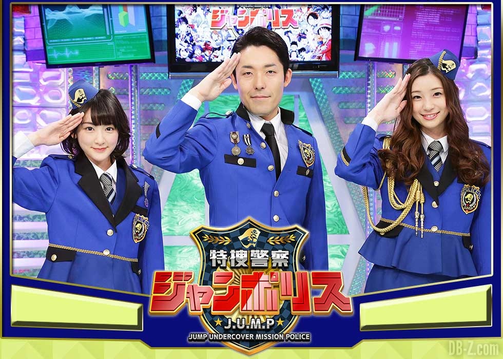 JUMPolice est le raccourci de Jump Under Mission Police. C’est une brigade spéciale de recherche dans une émission japonaise diffusée depuis le 04 avril 2014. C’est un programme de divertissement qui traite des mangas, animés, et jeux du Weekly Shōnen Jump, V-Jump, Saikyo Jump, et Jump Square. Voici l’équipe au complet :