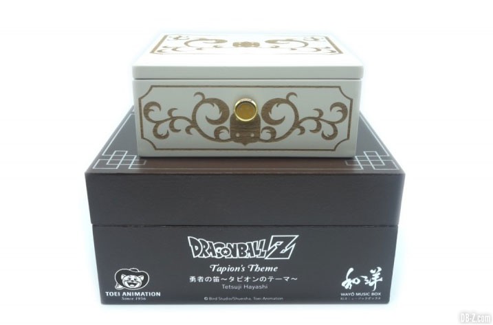 Pour la première fois, une réplique officielle de la boîte à musique de Tapion, du film Dragon Ball Z – L’Attaque du Dragon, est annoncée ! Il s’agit de la réplique exacte de celle qui apparaît dans le film, et elle joue à l’identique l’air de « Yūsha no fue » (littéralement « le sifflement du héros« ). Il s’agit du thème de Tapion, composé par Tetsuji Hayashi.