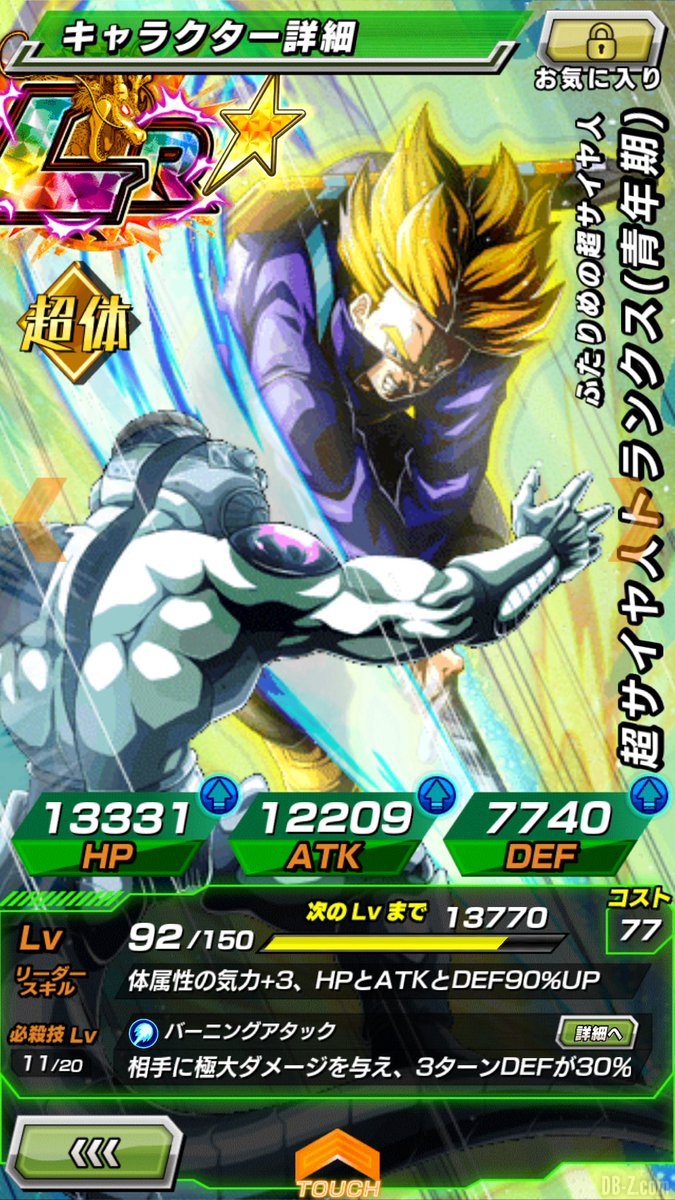 Attaque Spéciale 2 (entre 18 et 24 KI) : Inflige des dégâts titanesque, augmente l’ATK de 40% pour tous les alliés de type EXTRÊME durant 1 tour.