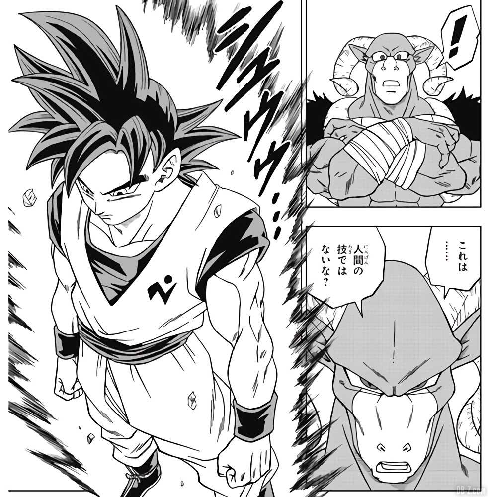 De son côté, Moro est impassible; mais il admire la façon dont Goku peut utiliser une technique divine : il doit admettre qu’il l’a sous-estimé. Les deux s’observent quelques secondes avant de commencer la bataille. En marge, Piccolo dit que ce combat déterminera le sort non seulement de la Terre, mais de l’Univers tout entier.