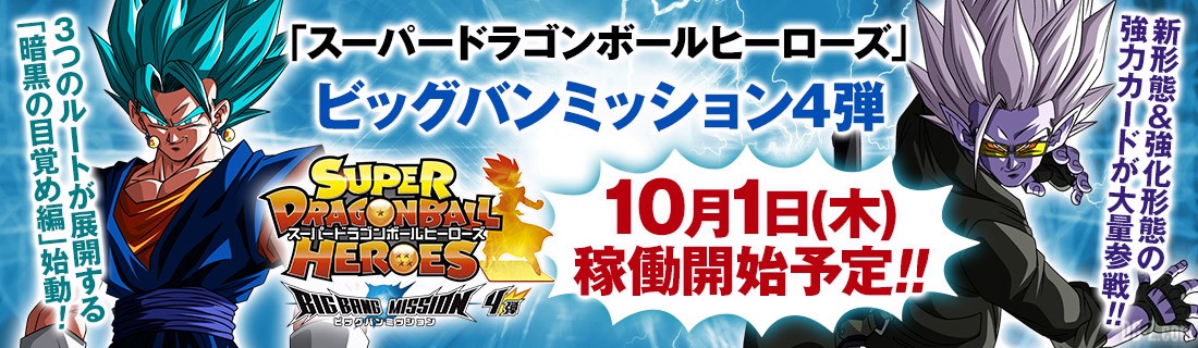 La liste des cartes de Super Dragon Ball Heroes Big Bang Mission 4 est là. SDBH Big Bang Mission 4 sortira le 1er octobre 2020 au Japon. En effet, ce premier trailer nous apprend qu’il y aura 3 cartes secrètes, ainsi que des cartes UR (ultimate rare), comme d’habitude. Voici par exemple les cartes de la campagne « Désespoir du Futur ».