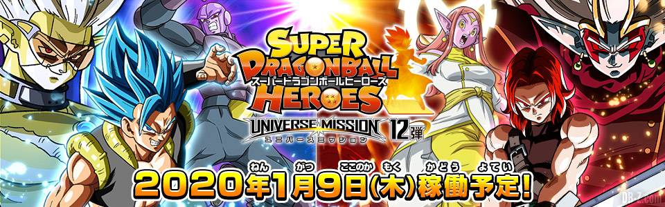Voici la liste des cartes de Super Dragon Ball Heroes Universe Mission 12, le dernier volet de la sage Universe Mission. Elle sortira le 09 janvier 2020 au Japon. L’opening de SDBH UM12 nous présente les deux trames principales de cet opus, avec la fin de l’arc du « conflit universel » (Gogeta vs Hearts), et la suite de l’arc du « Royaume des Ténèbres ».
