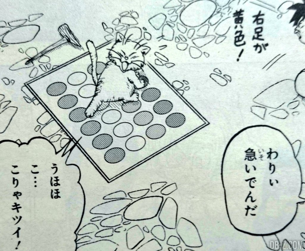 Pour les fans du jeu Twister, on voit également Karin en train d’y jouer avec Yajirobe, pendant que Goku attend ses Senzus…