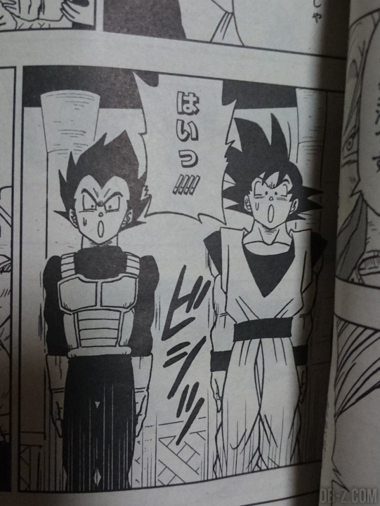 Le chapitre 15 de Dragon Ball Super est toujours attendu, et de nouvelles images continuent de fuiter via les lecteurs japonais du V-Jump. Après nos précédents articles qui vous donnent de nouvelles informations sur Whis et Beerus à l’époque de Majin Buu, et après les pages du combat contre Trunks et Goku Black, cette fois on s’attarde sur Goku et Vegeta, et le duel entre Goku et Trunks.