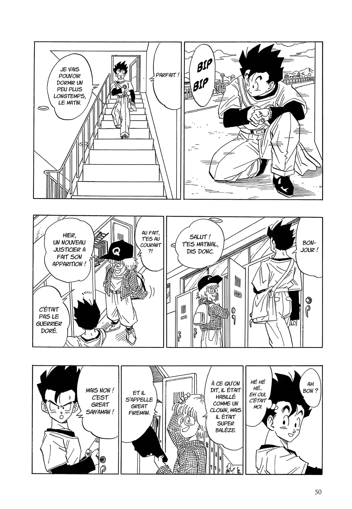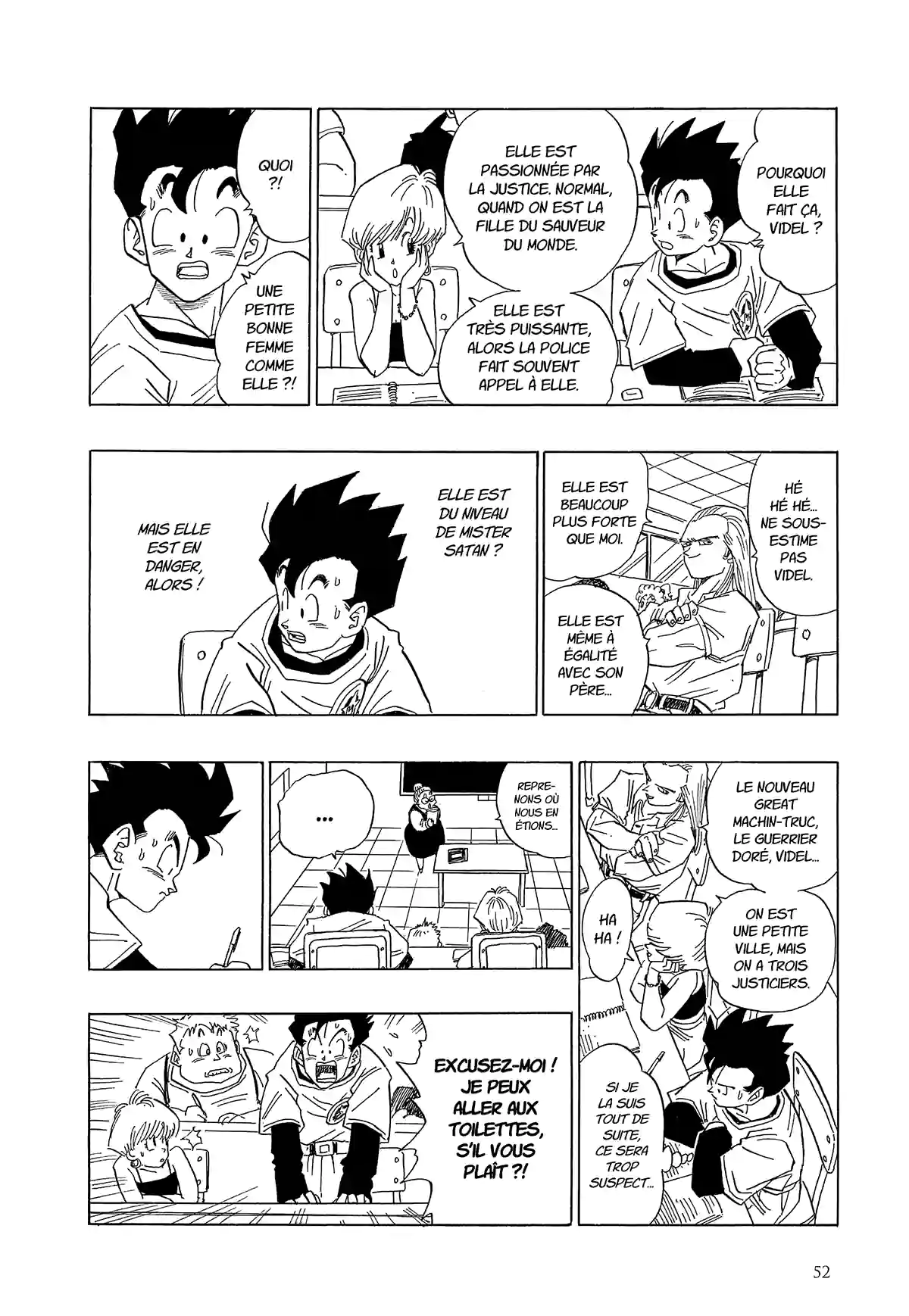 Ce nouveau chapitre de 55 pages de Toyotaro est mensuel, tandis que Toriyama publiait un chapitre de 15 pages par semaine. On pourrait donc essayer de regarder comment s’en est sorti Akira Toriyama à l’époque, et c’est pourquoi on vous propose les 4 chapitres suivants, qui sont relativement (relativement) comparables au chapitre 88 de Toyotaro, en ce sens où ils ouvrent un nouvel arc, avec un nouveau Gohan adolescent qui entre au lycée, qui se fait de nouveaux amis, et qui souhaite devenir un super héros. Bien entendu, il se passe plein d’autres choses dans le chapitre de Toyotaro qui n’est pas un remake, on est d’accord. Pour l’anecdote, même les noms des chapitres se ressemblent, preuve que Toyotaro n’est pas si hors-sujet que ce que l’on peut lire.
