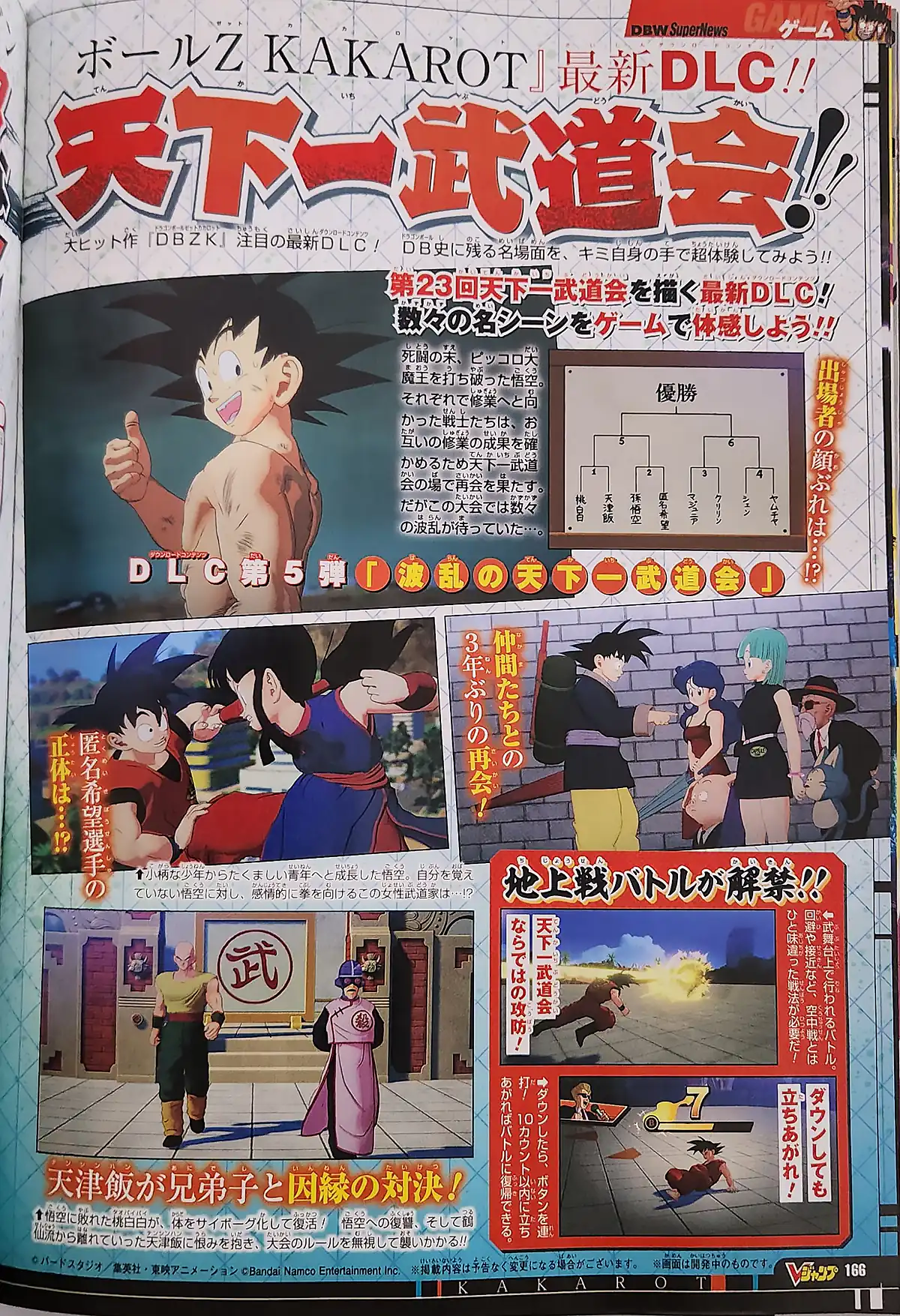 Dragon Ball continue de briller dans le V-Jump du mois ! Les nouvelles sont fraiches, et comme toujours, vous pourrez remercier Bandai Namco de continuer à faire vivre la licence. En effet, la grosse majorité des actualités Dragon Ball du mois concernent une nouvelle fois les jeux vidéos, bien que de nouvelles annonces de figurines soient aussi au programme.