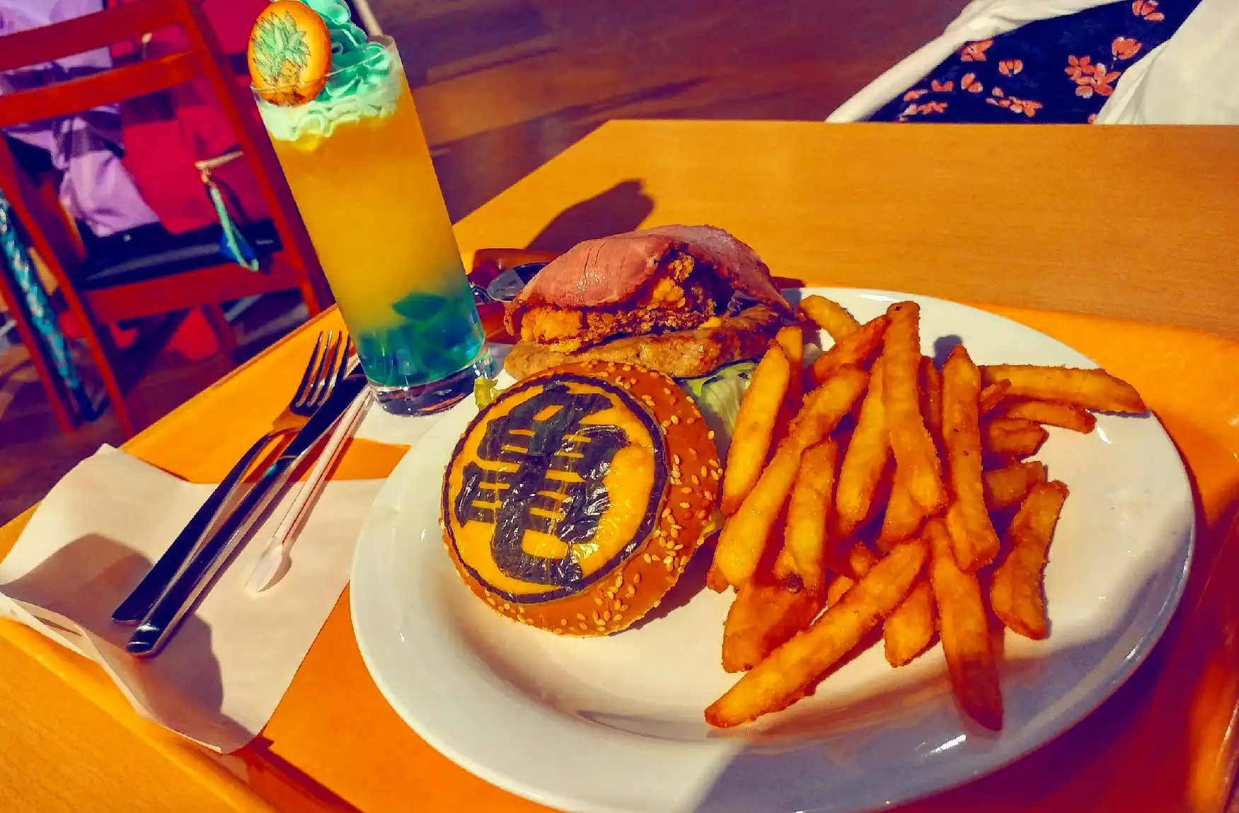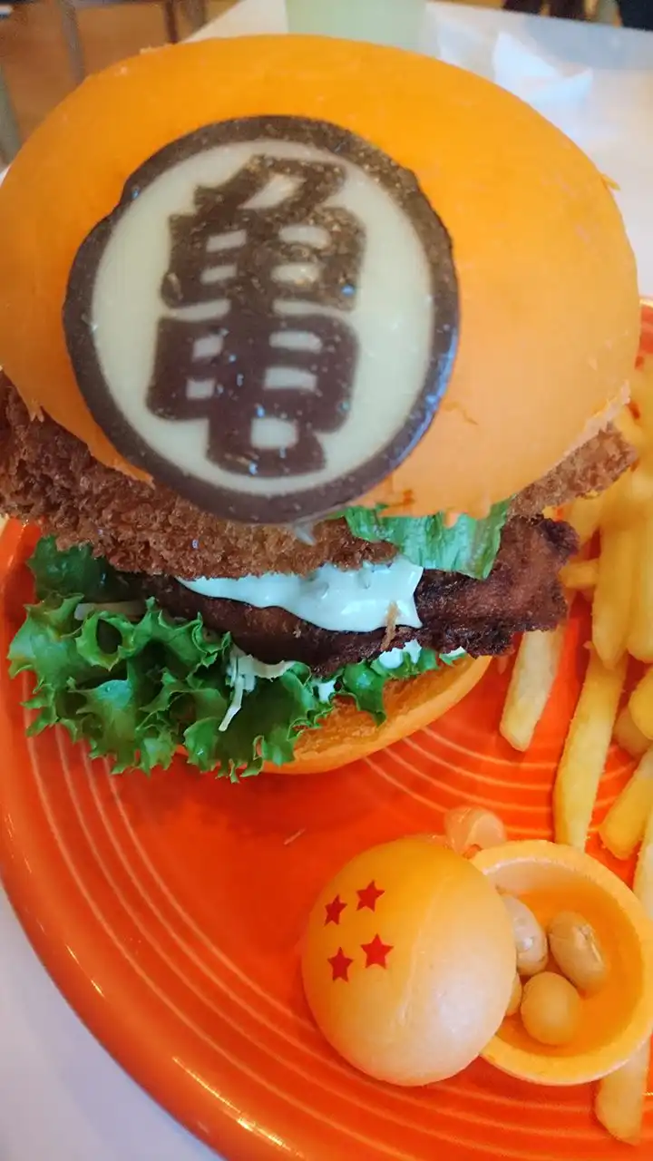 Le menu proposait un festival de burgers à l’image de City Hunter (Nicky Larson), Captain Tsubasa (Olive & Tom), Fist of the North Star (Ken le Survivant), ou encore Dragon Ball, avec le Burger au Poisson de l’Ecole de la Tortue (亀仙流のフィッシュバーガー). Il coûtait 1680 yens (9,90 € frites et senzu inclus, mais sans boisson).