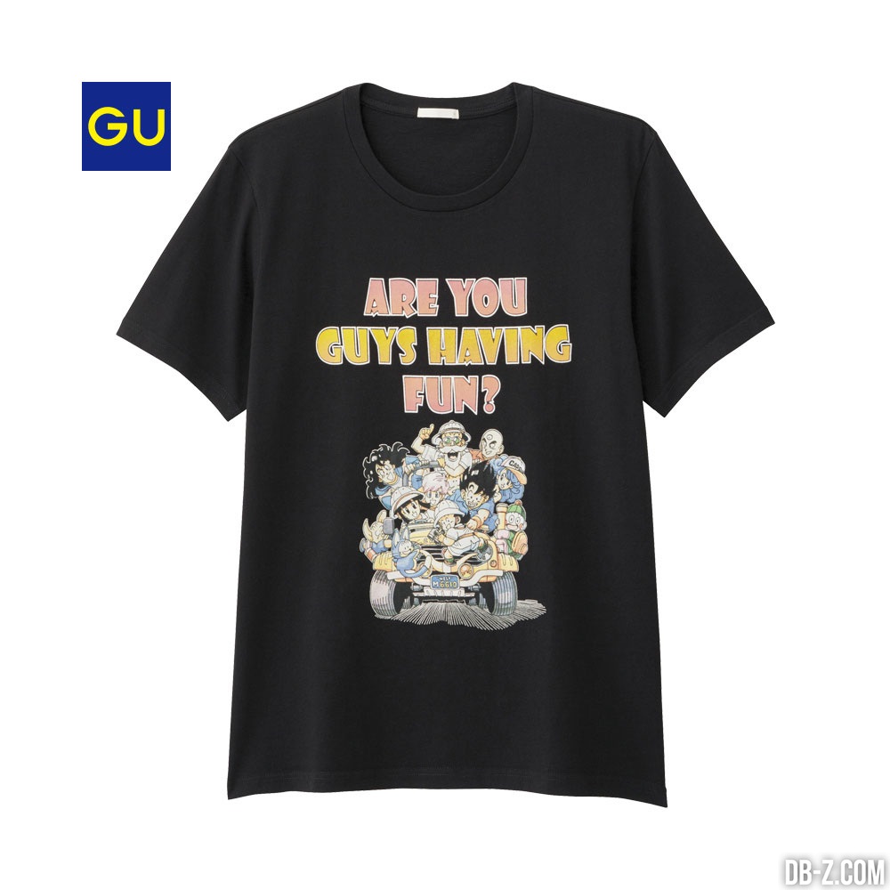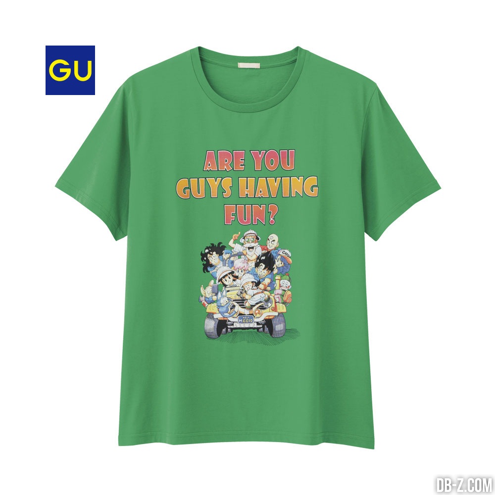 On parlait hier de la 2nde collaboration Dragon Ball × Chocoolate, avec notamment la Master Stars Piece The Son Gohan « Chocoolate », et voici aujourd’hui une nouvelle opération entre une autre marque et Dragon Ball – parce que Goku est revenu à mode : c’est le moment ou jamais de vous pomper tout votre fric après tout. Cette fois, c’est GU qui s’y lance. GU est très populaire au Japon avec près de 330 magasins. La marque a aussi récemment ouvert en Chine et à Taiwan. Elle a plutôt un positionnement casual et discount, avec des prix avoisinant les 10 euros. L’une des marques du groupe Fast Retailing, et par ailleurs petite soeur d’Uniqlo, lance donc cette nouvelle gamme de vêtements estampillés Dragon Ball, avec au menu : des T-Shirts, des shorts de détente (pour pas dire des pyjamas), et des caleçons Dragon Ball.