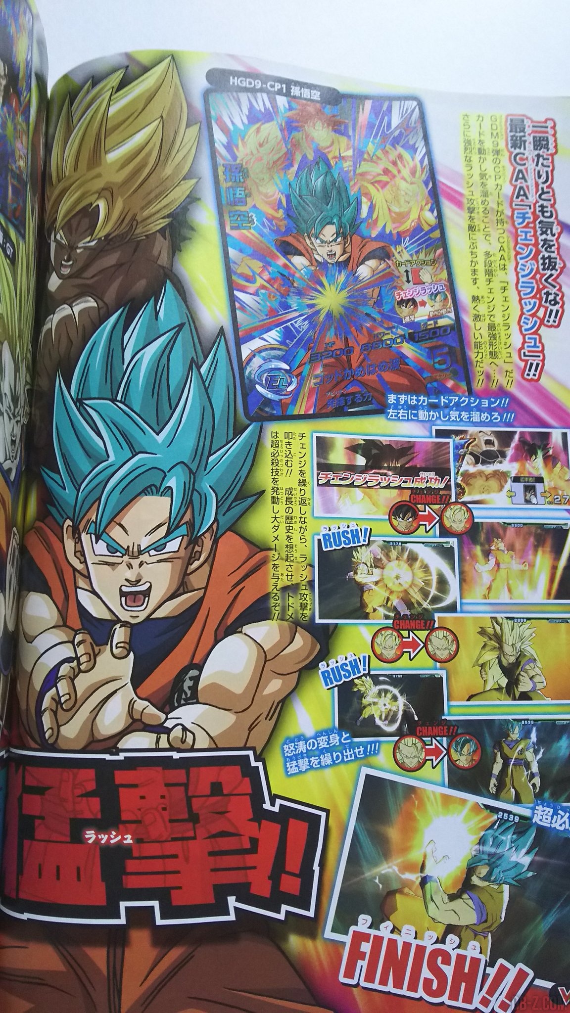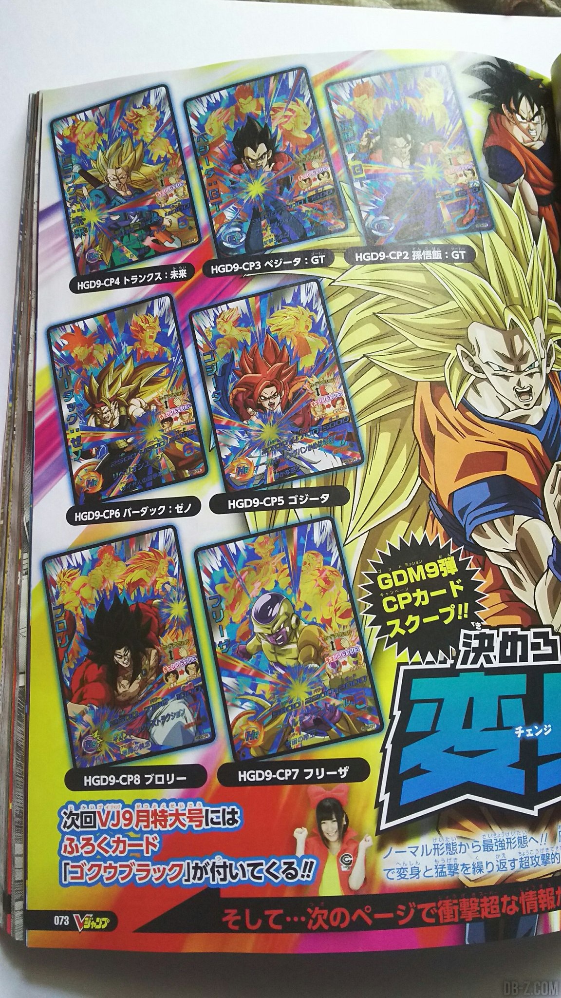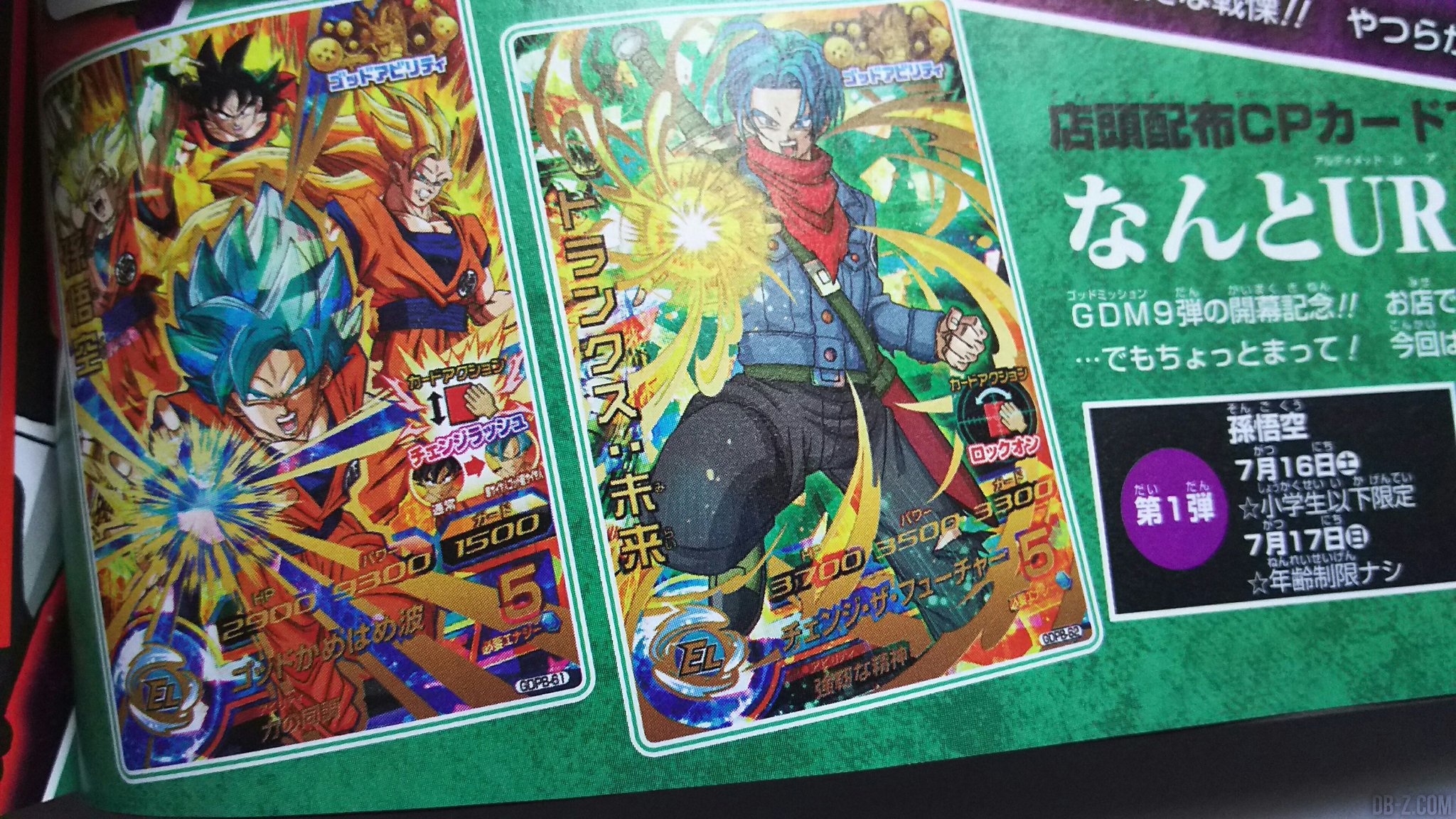 Comme à chaque nouveau chapitre de Dragon Ball Heroes, de nouvelles cartes UR (ultra rares) débarquent. D’ailleurs, beaucoup d’autres cartes GDM9 avaient été présentées dans le V-Jump de Juin 2016 sorti mardi dernier, dont des cartes spéciales permettant d’activer une nouvelle fonctionnalité : le CHANGE RUSH.