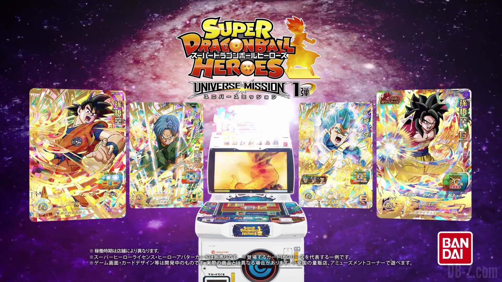 Dragon Ball Universe Mission 1 (UM1) sortira le 08 mars 2018 au Japon, avec les nouveautés habituelles : de nouveaux scénarios pour le mode histoire, les avatars qui peuvent se transformer en Super Saiyan Blue (SSGSS), et bien sûr de nouvelles cartes toutes neuves ! Si vous ne connaissez pas Dragon Ball Heroes, c’est pas ici :