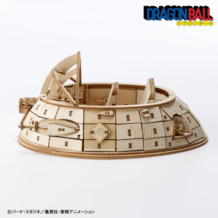 Ce modèle reproduit la célèbre moto issue de la Capsule No.9 utilisée par Bulma au début de l’aventure. La maquette met l’accent sur les formes arrondies propres au style Capsule Corp, avec un design fidèle et une finition en bois très soignée.