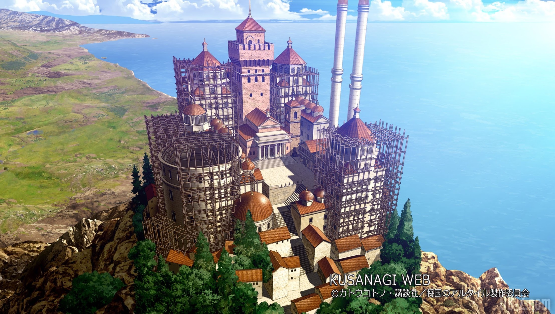 Voici le croquis du palais qu’a dessiné Sue-san, suivi de sa coloration :