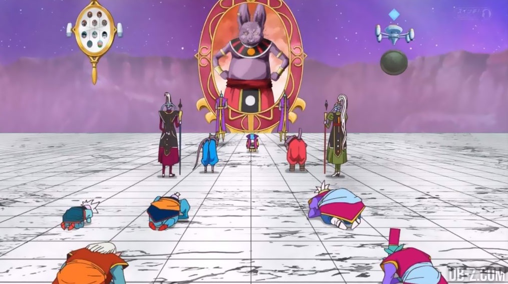 - Whis et Vados s’inclinent devant Zeno. Dans l’animé, ce sont les seuls à ne pas s’incliner…
