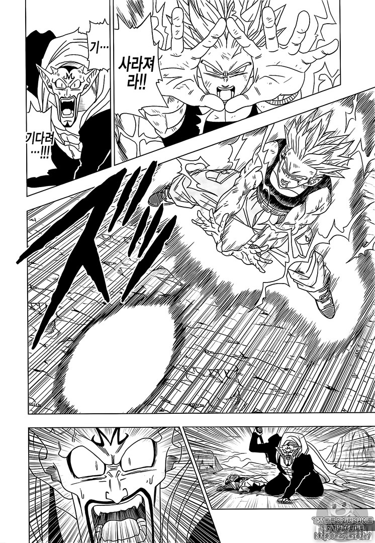 Revoici le chapitre 16 de Dragon Ball Super que nous avons posté ce matin ! Il est en haute qualité cette fois, mais en coréen – ce qui ne change relativement rien. Toutefois, nous avons posté la traduction en VF. Le texte en français n’est pas dans les bulles, mais directement transcris ci-dessous, sous chaque page. On laisse le reste aux teams spécialisées, et nous relayerons leur travail plus tard.