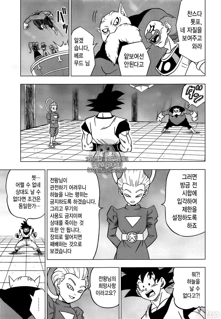 Ce chapitre 29 continue le tournoi d’exhibition qui se joue devant les Rois Zeno et le Grand Prêtre (Daishinkan). Ce tournoi met en compétition les Dieux de la Destruction, et il met l’accent sur leurs capacités personnelles qui se révèlent dans ce chapitre 29 de DBS :