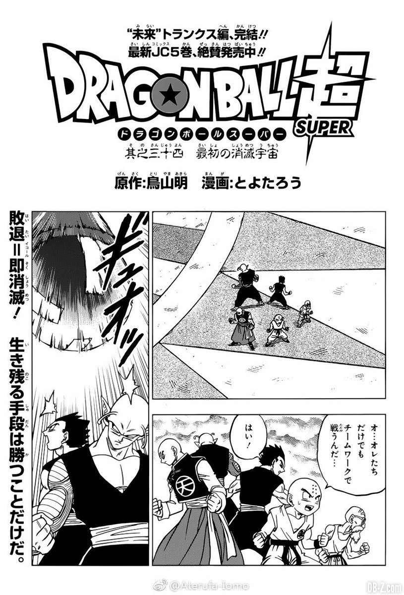 Le chapitre 34 de Dragon Ball Super sortira avec le V-JUMP du mois, prévu pour le 20 mars dans les boutiques Japonaises. Suite du précédent chapitre 33 : le Tournoi du Pouvoir continue dans sa version manga papier avec la disparition d’un premier Univers… !