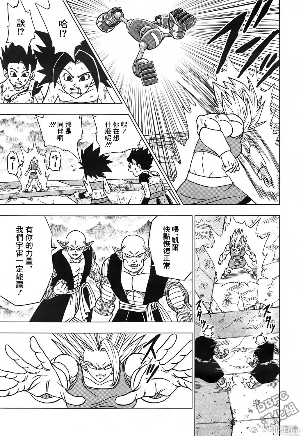 Après les premiers leaks du V-Jump et les premières images, voici le chapitre 38 de Dragon Ball Super dans son intégralité, mais malheureusement pas encore en français. Toyotaro en est toujours l’auteur, et il est comme toujours supervisé par son maître et créateur de Dragon Ball, Akira Toriyama. Pour rappel, nous sommes en plein tournoi du pouvoir, et Kale est passée en mode Berserk. Vous pouvez relier le chapitre 37 de Dragon Ball Super si vous l’avez manqué.