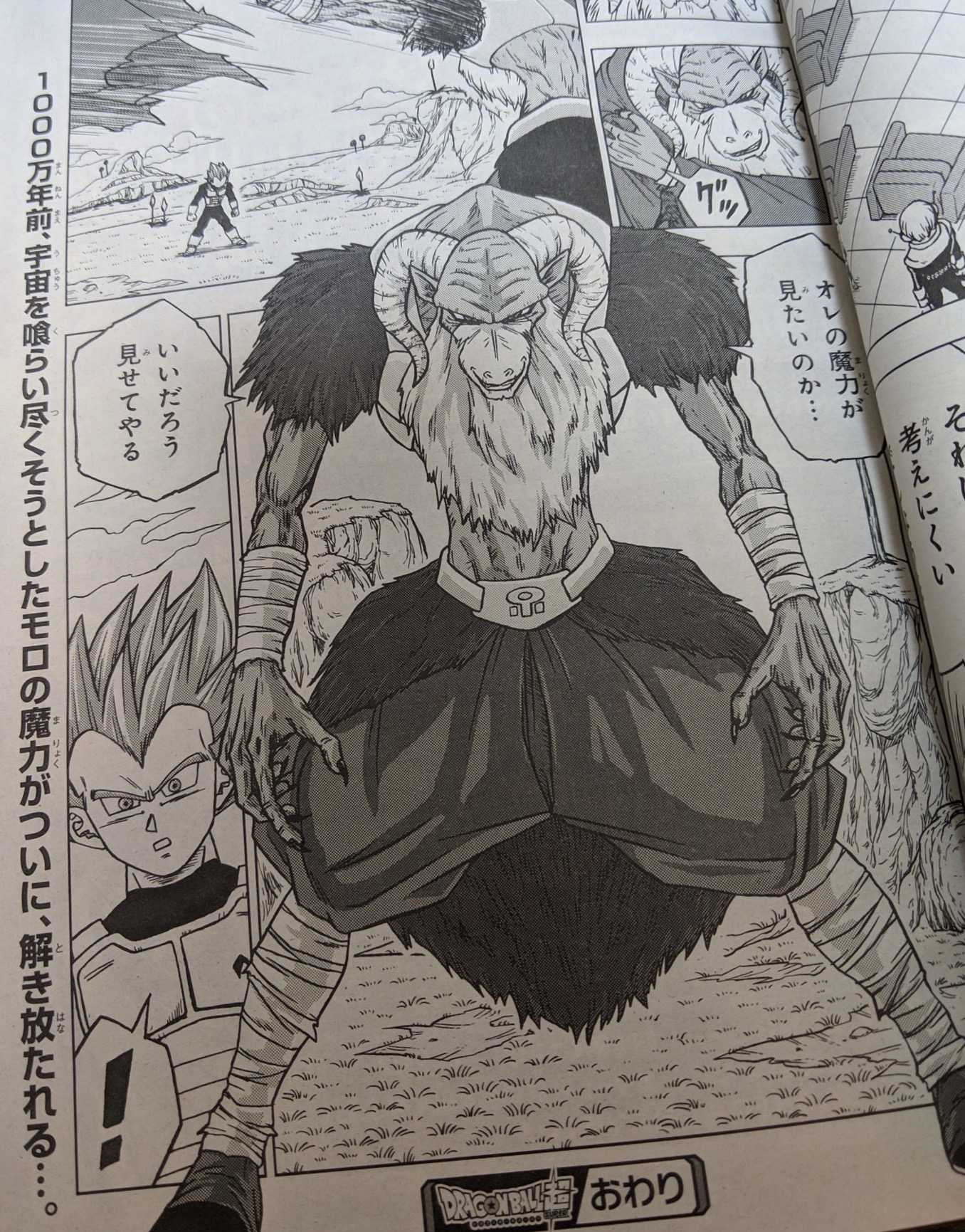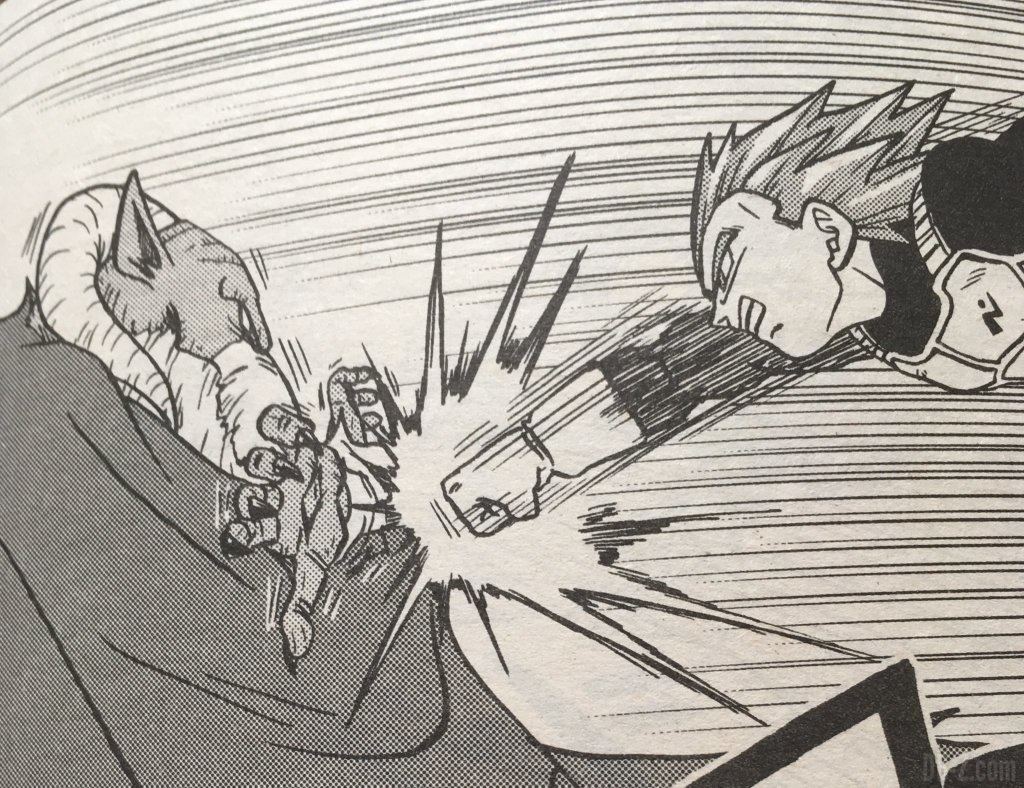 Plus tard, il semble sur ces images que Vegeta se transforme en Super Saiyan God. La dernière image nous montre Moreau sans sa cap, disant à Goku et Vegeta : « Vous voulez goûter à mon pouvoir ? Bien, je vais vous le montrer. »