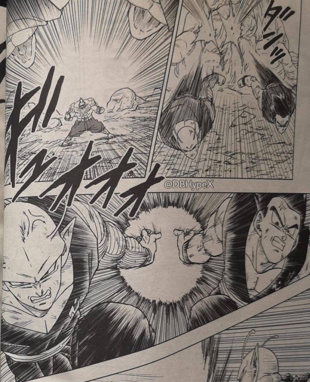 Piccolo se demande si c’est Jaco qu ifait ça, alors que Saganbo reçoit encore plus de coups de la part de quelqu’un d’invisible.