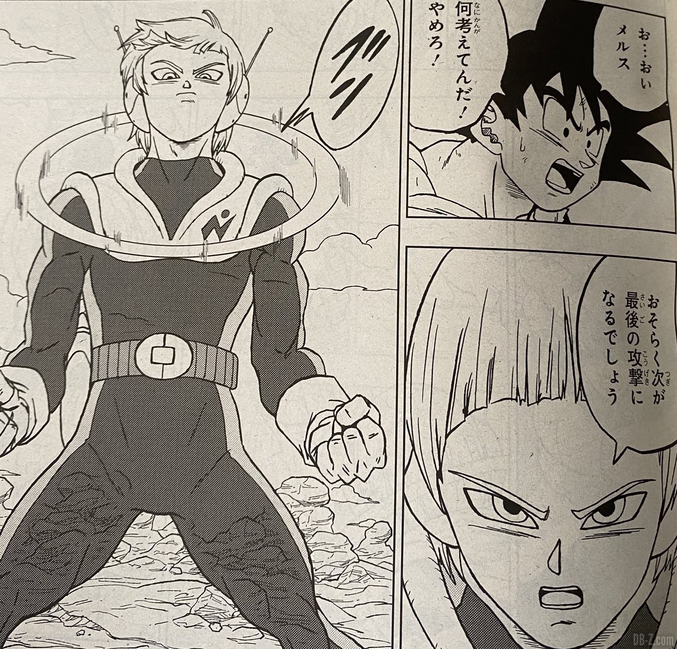 Voici les premières images du chapitre 63 de Dragon Ball Super, intitulé « La résolution de Merus ». L’ami DBSHype les a partagées sur Twitter avec un court résumé de ce qui nous attend, et autant dire que si vous ne voulez pas en savoir davantage, mieux vaut quitter cette page dès maintenant.