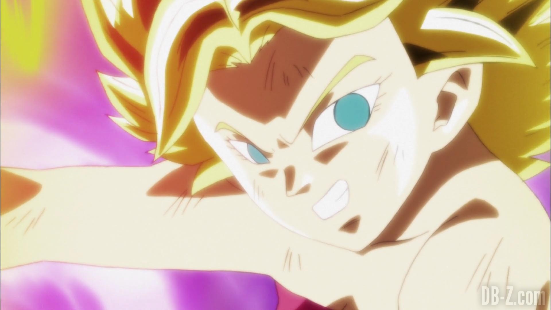 Synopsis : Les soldats de l’Univers 11 attaquent avec un travail d’équipe ! Goku fonce sur Jiren de l’Univers 11, mais Jiren envoi 5 autres des Pride Troppers dont Khaseral pour attaquer Goku et les autres ! Pour les affronter, Goku s’unit avec Kale et Caulifla !
