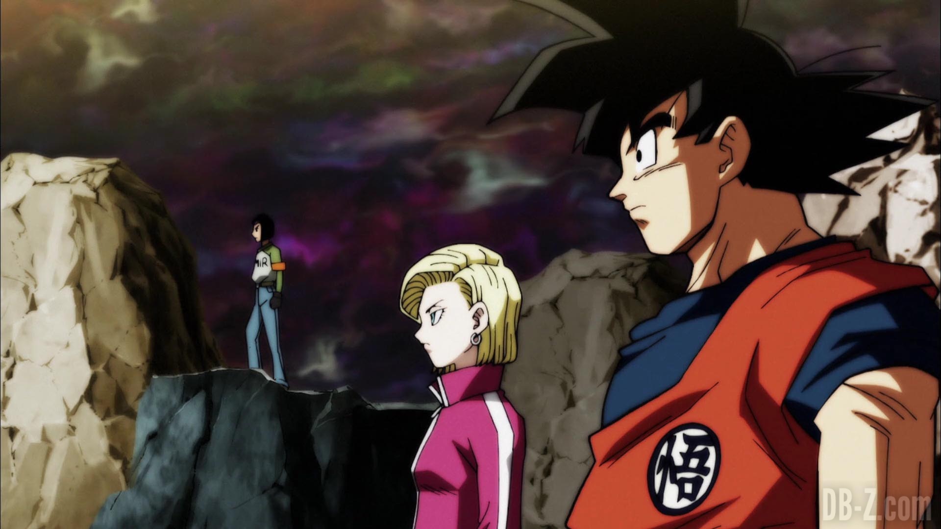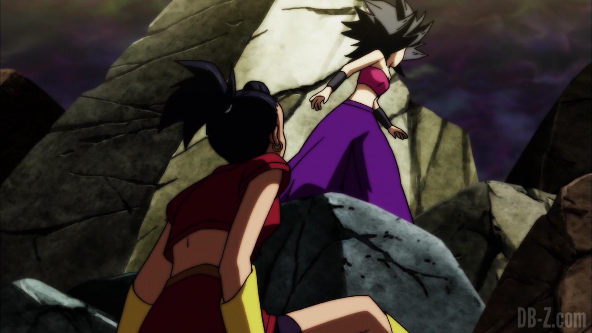 Le grand prêtre note que la phase d’ouverture du tournoi est maintenant terminée, et qu’à partir de maintenant, les combats devraient être beaucoup plus intenses. Goku laisse Caulifla et Kale (épuisées) s’enfuir. Il se rend compte qu’elles deviendront plus fortes et veut un jour les combattre. Caulifla dit que Goku pourrait le regretter. Mais Goku et les autres ne se rendent pas compte qu’une ombre mystérieuse les surveille… (Merci à Herms pour la traduction anglaise)