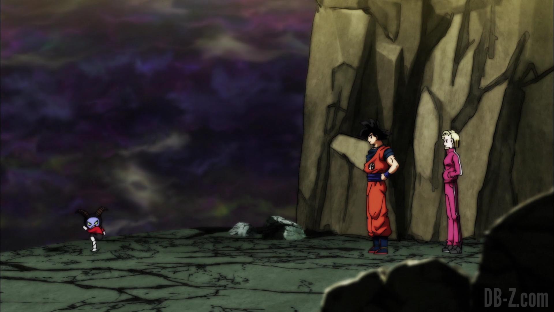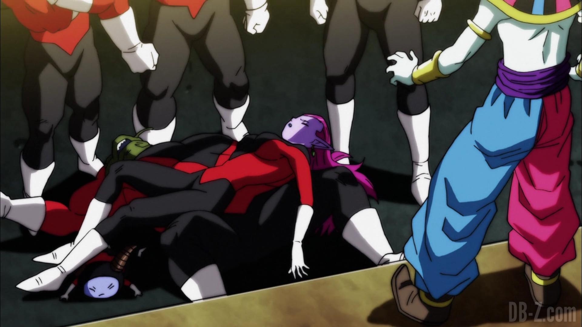 A l’écart, Caulifla regarde Kale alors qu’elle se réveille et lui dit combien elle a été forte, mais Kale ne se souvient pas de son combat. Pendant ce temps, Goku défie Jiren, mais Jiren reste silencieux. Soudain Toppo débarque et frappe Goku avec sa technique « Justice Flash ». Toppo dit à Jiren qu’il enverra une équipe de cinq Pride Troopers pour vaincre Goku. De cette façon, lui et Jiren peuvent conserver leurs forces pour plus tard.