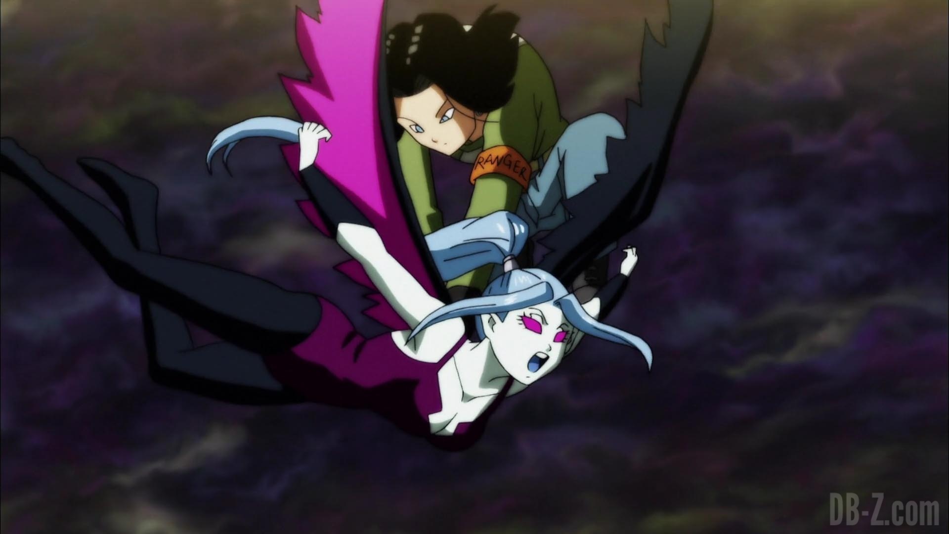 Alors que Brianne se transforme, C-17 l’attaque sans merci. Son comportement est jugé comme grossier, évidemment par ceux de l’Univers 2, et même Goku le réprimande !?
