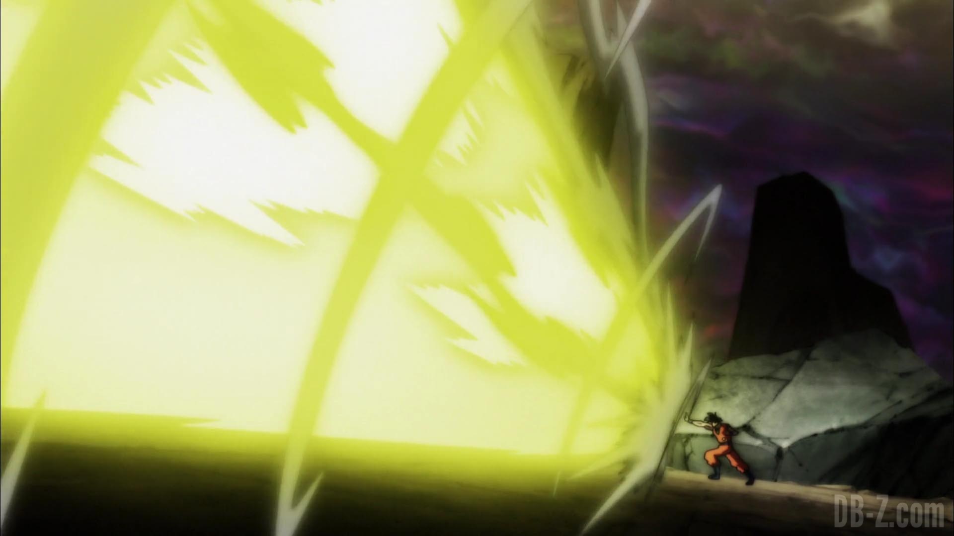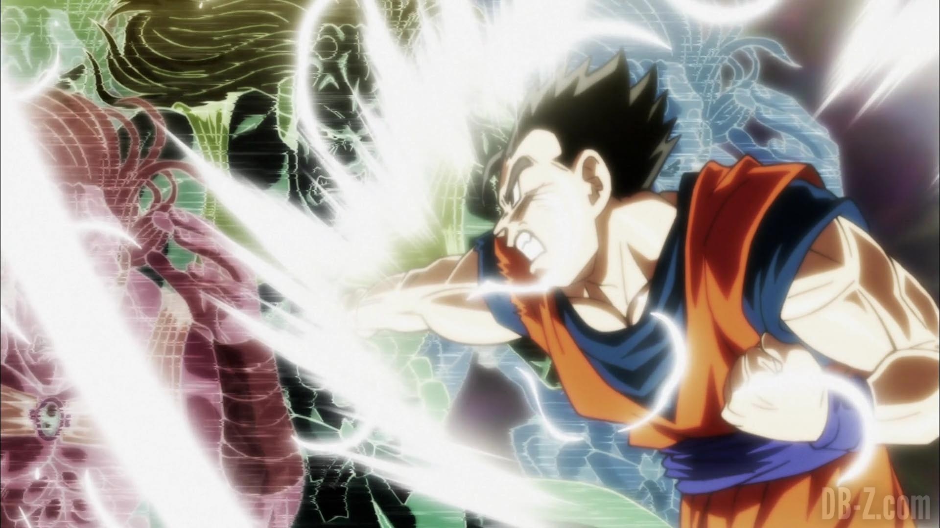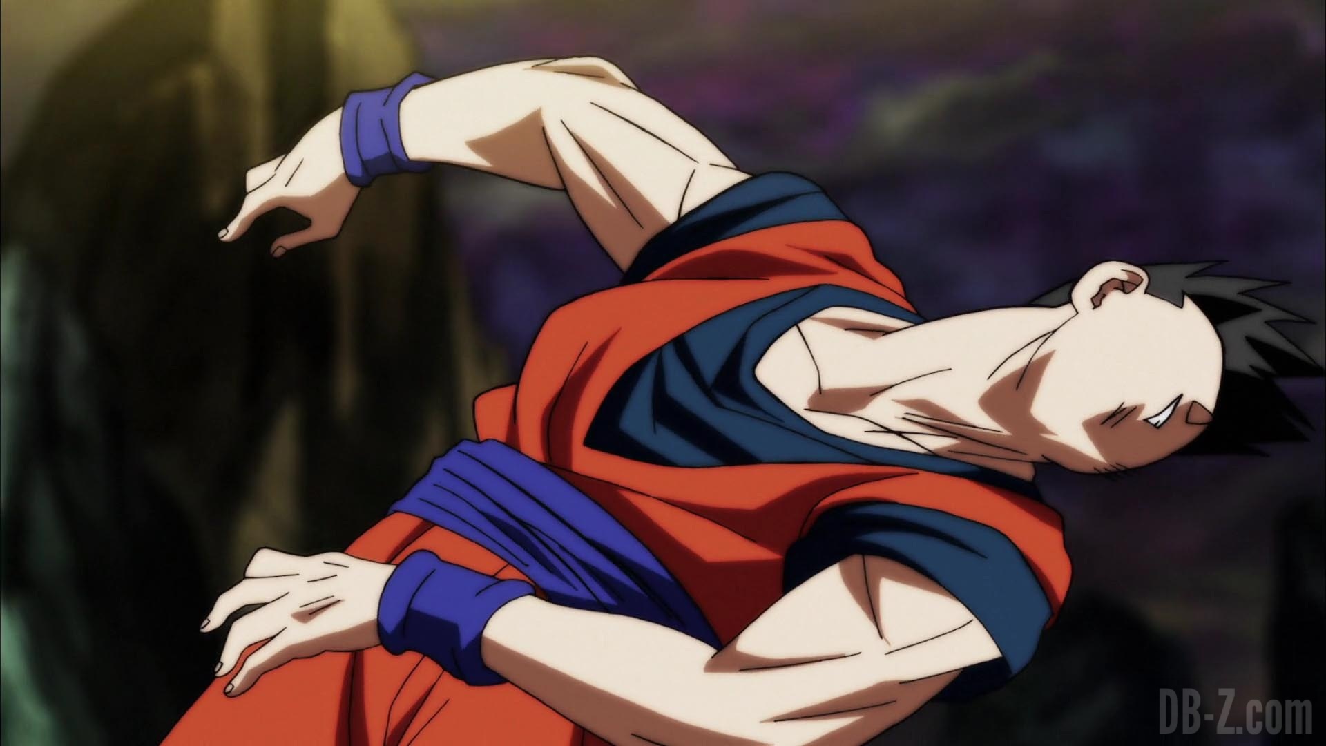 Gohan continue d’être battu par les attaques d’Obuni, mais il refuse d’abandonner. A la prochaine attaque d’Obuni, Gohan contre-attaque immédiatement, cette fois-ci réussissant à frapper Obuni. Beerus et Whis se rendent compte que Gohan se laissait frapper afin de déterminer la position d’Obuni et de contre-attaquer avec succès. Bien que efficace, cela signifie que Gohan continuera à prendre des dégâts infligés par les attaques d’Obuni. Heureusement, et petit à petit, les attaques de Gohan réussissent de plus en plus, notamment car Obuni n’a plus assez d’énergie pour continuer à esquiver. Gohan finit avec un autre Kamehameha, envoyant Obuni hors limites.