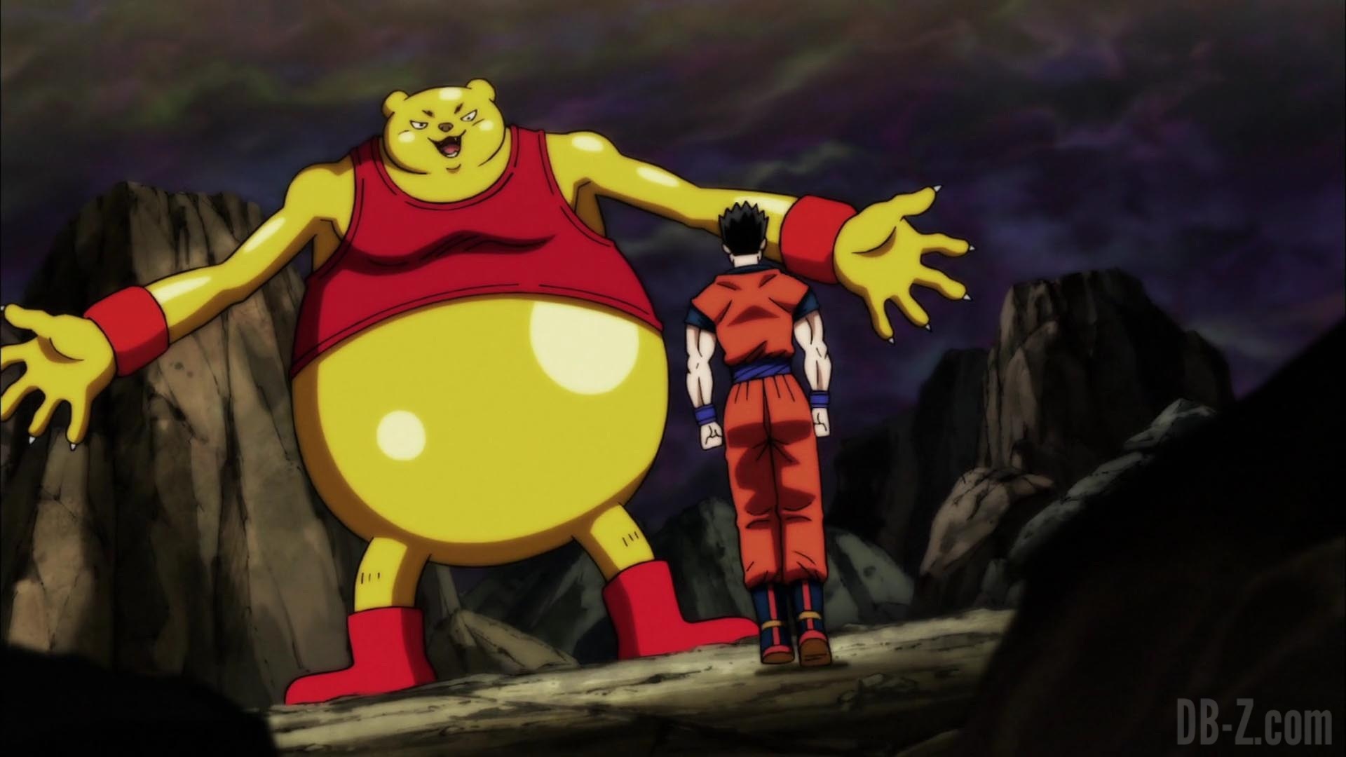 Ribrianne intervient entre Goku et Rozie pour interrompre leur combat et vérifier que Rozie n’est pas blessée, et le Yardrat de l’U2 (Jimeze) arrive et téléporte les deux pour les mettre en sécurité. Goku et C-17 vont chercher de nouveaux adversaires, laissant Beerus agacé par le comportement de Goku, mais Champa dit que Beerus a plus que Goku pour s’inquiéter… et, en ce moment, Gohan et Piccolo sont confrontés à Botamo. Gohan choisit de combattre Botamo seul, déchaînant une rafale de coups de poing qui ne le dérange pas du tout. Piccolo sait que Gohan doit savoir que Botamo ne prend pas de dégâts ou de fatigue, alors il est curieux de savoir comment il a l’intention de le combattre.
