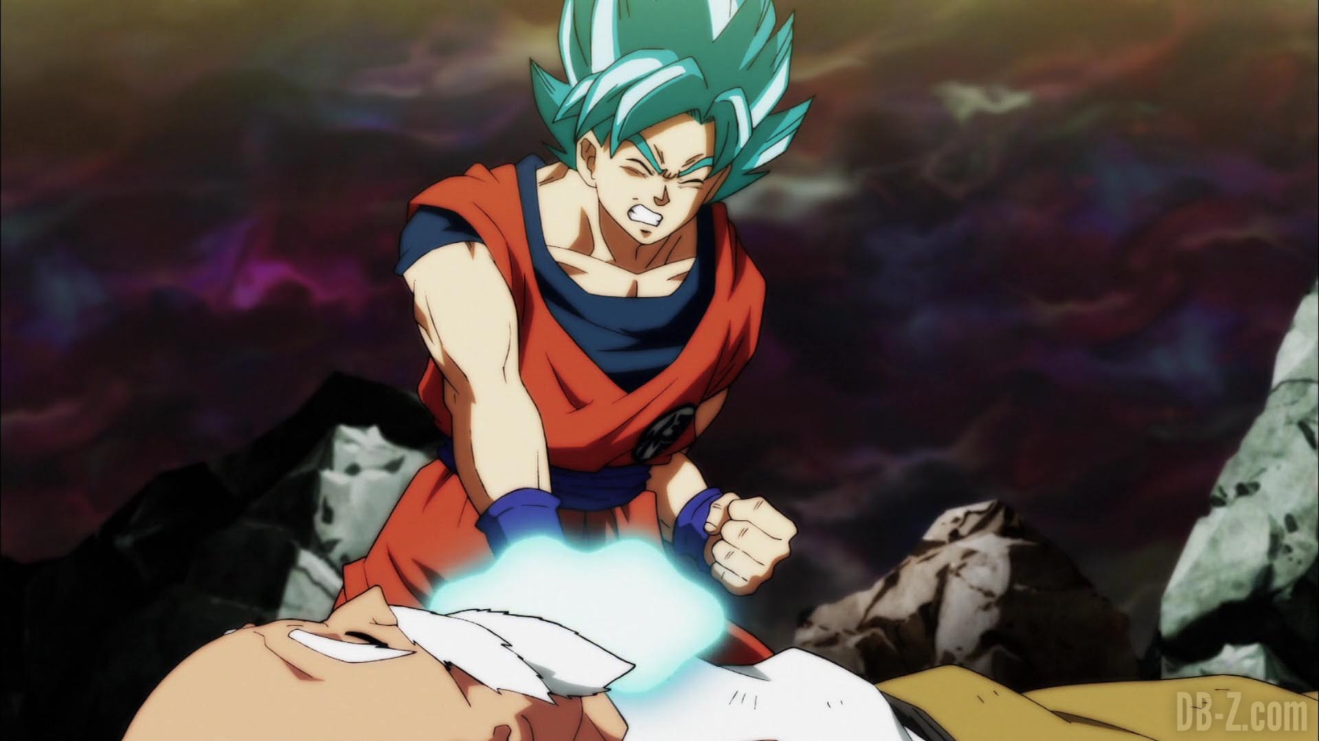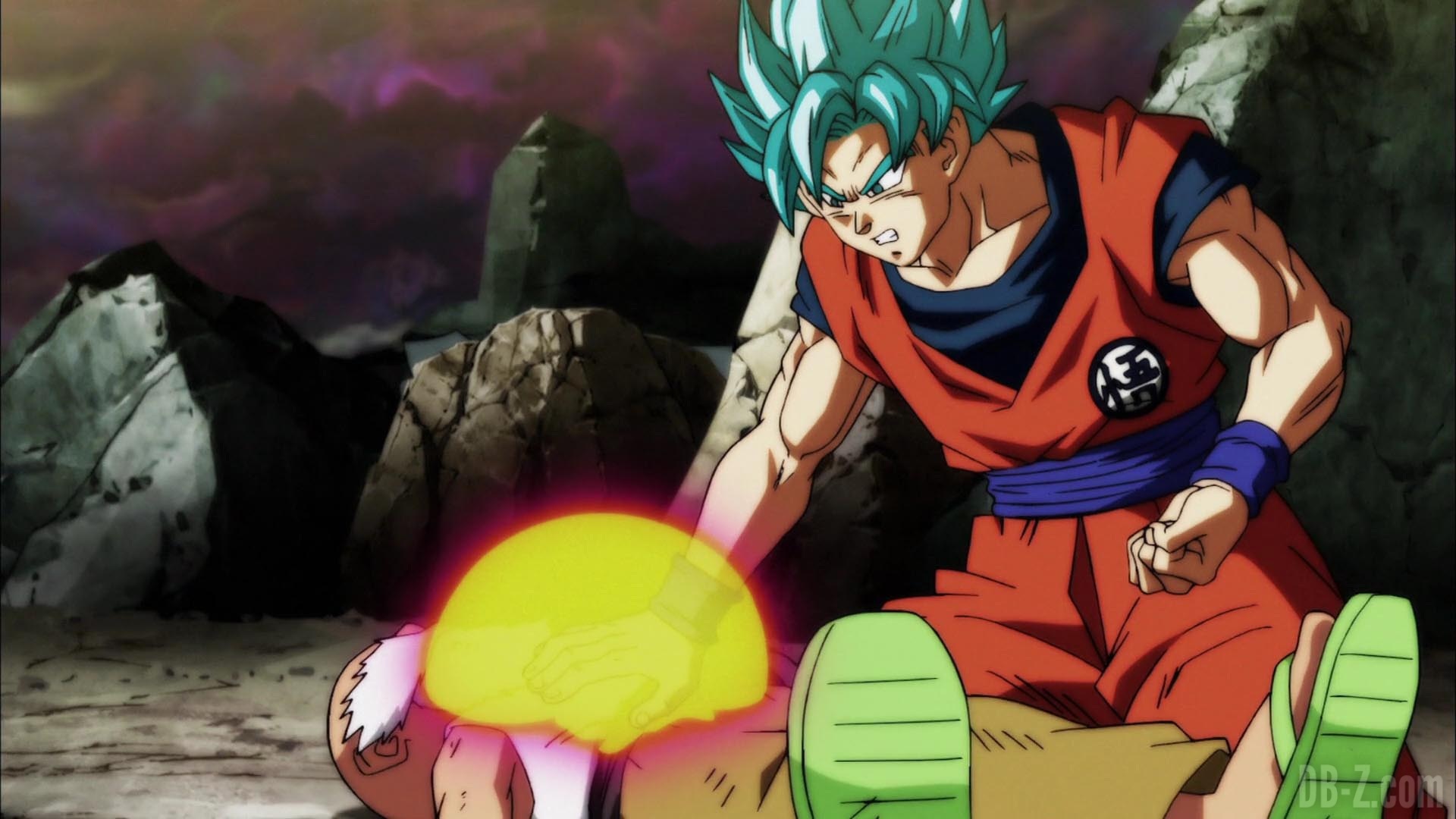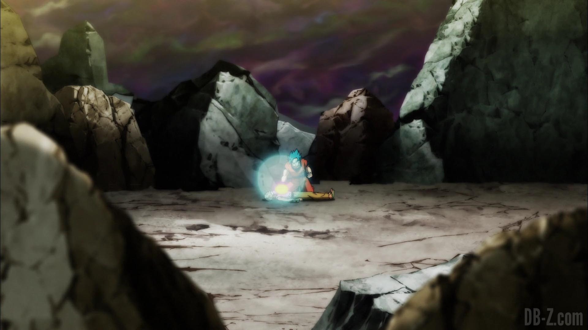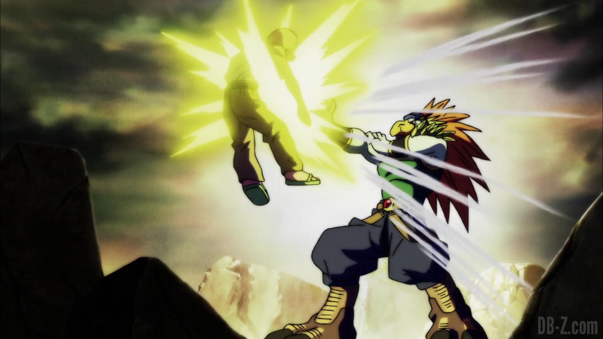 Alors que Beerus célèbre la troisième victoire de Roshi, Roshi lui-même s’effondre immédiatement au sol. Krilin essaie d’aller à son côté, mais Shin lui rappelle qu’il n’est pas autorisé à revenir dans l’arène. C’est Goku qui se détache de son adversaire actuel (il passe en Super Saiyan Blue pour ça) et essaye de ressusciter Roshi par une série de rafales de ki à la poitrine. Lorsque celles-ci s’avèrent inefficaces, Goku libère une lumière bleue et revient à sa forme de base. Enfin, Roshi se réveille, se demandant où toutes les petites anges mignonnes sont parties. Tout le monde est ravi, mais Roshi rappelle à Goku que la bataille n’est pas encore terminé. Plus que 34 minutes dans le tournoi du pouvoir ! (Merci à Herms pour son résumé en anglais)
