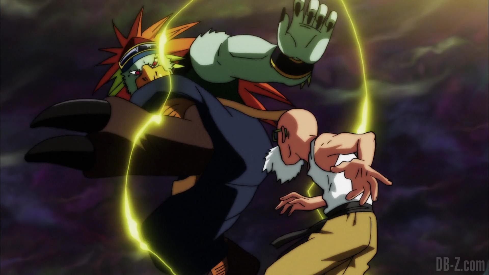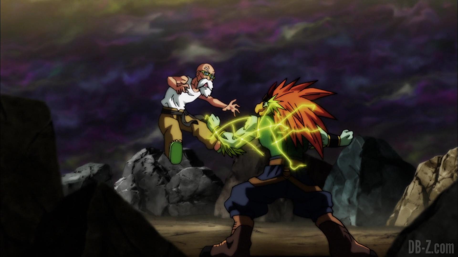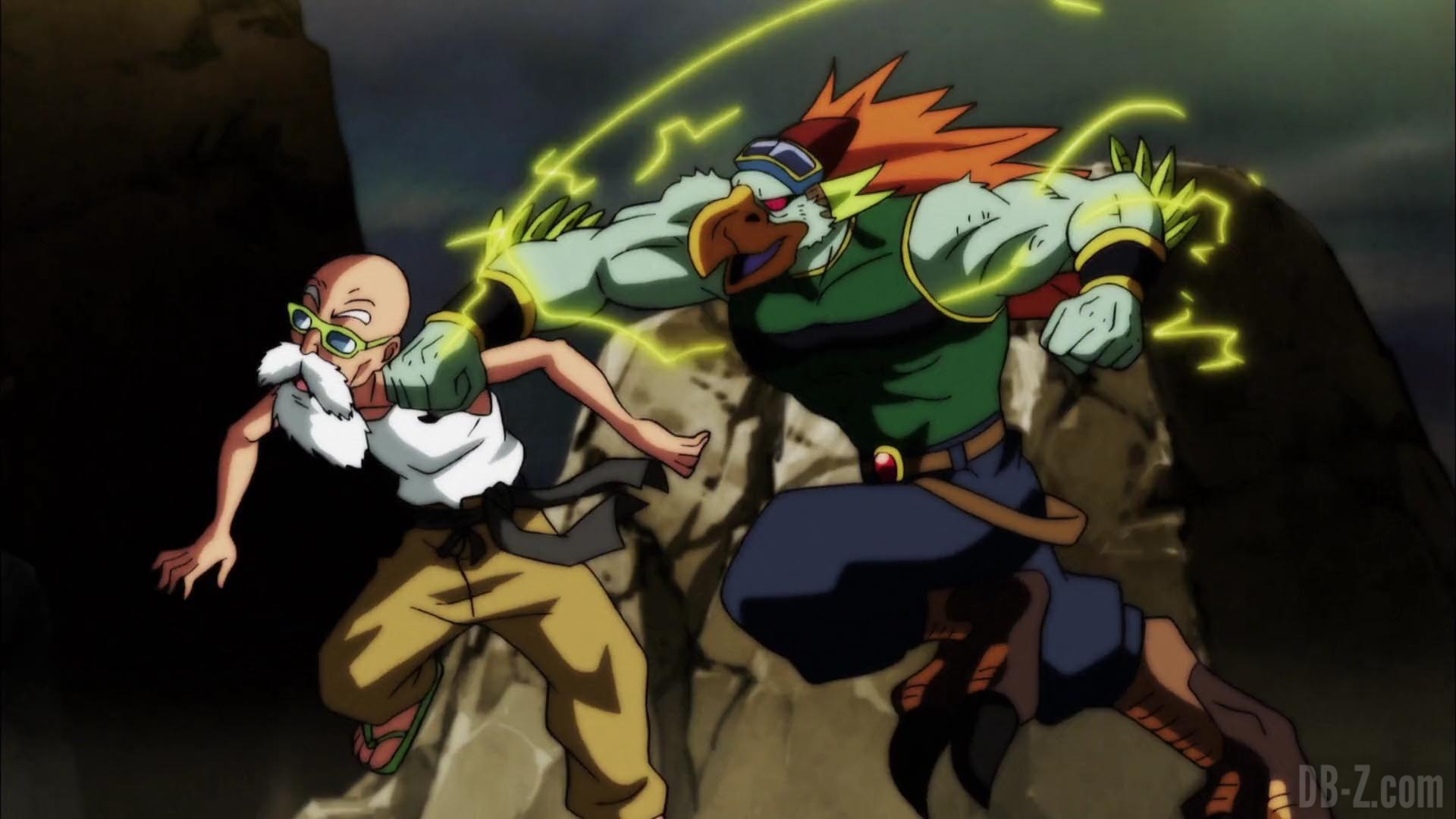 Avec de nombreux guerriers éliminés à ce stade, les Rois Zeno tentent de déterminer combien il en reste, mais ils s’y perdent vite dans le compte et se contentent de dire « beaucoup ». Sur le champ de bataille, Muten Roshi prétend qu’il reste moins de la moitié des combattants… Alors il est probablement temps de se donner à fond. Le guerrier Caway de l’Univers 4 l’attaque soudain avec un marteau matérialisé à partir de sa propre énergie, mais il fuit facilement et lui dit qu’elle ne peut pas le battre. Il s’avère que Roshi a observé les autres combattants depuis le début du tournoi, ce qui lui donne une bonne compréhension de la puissance de chacun et de la nature des techniques qu’ils utilisent.