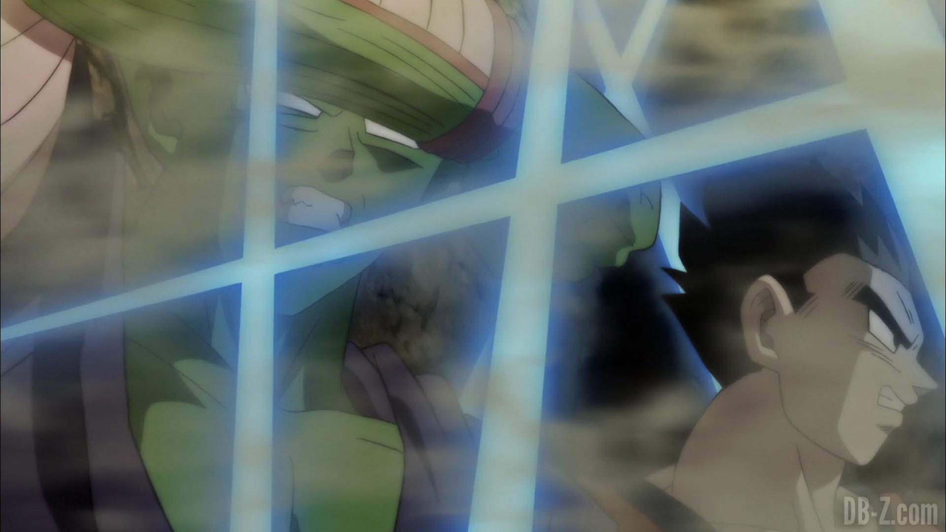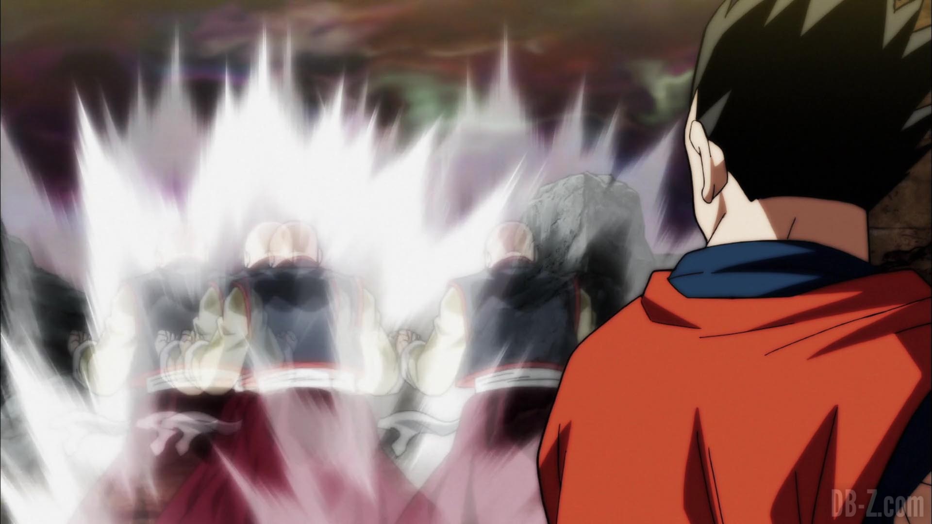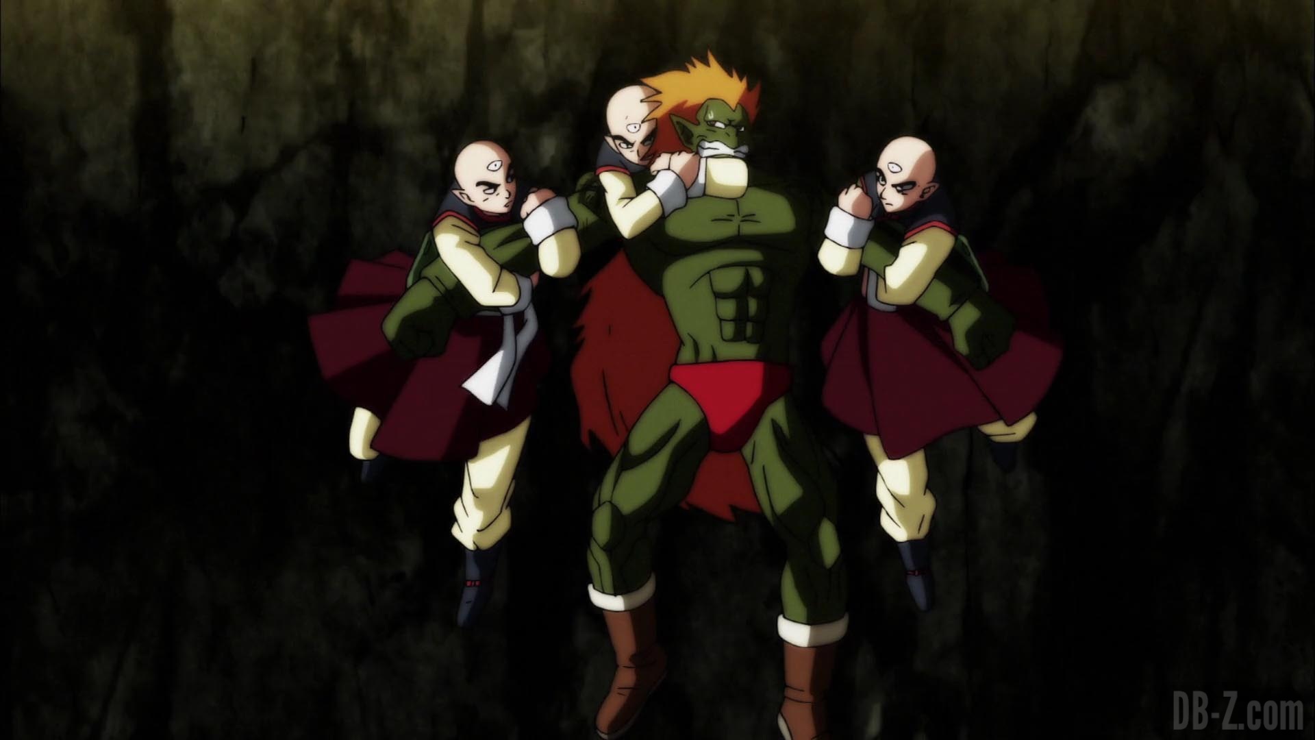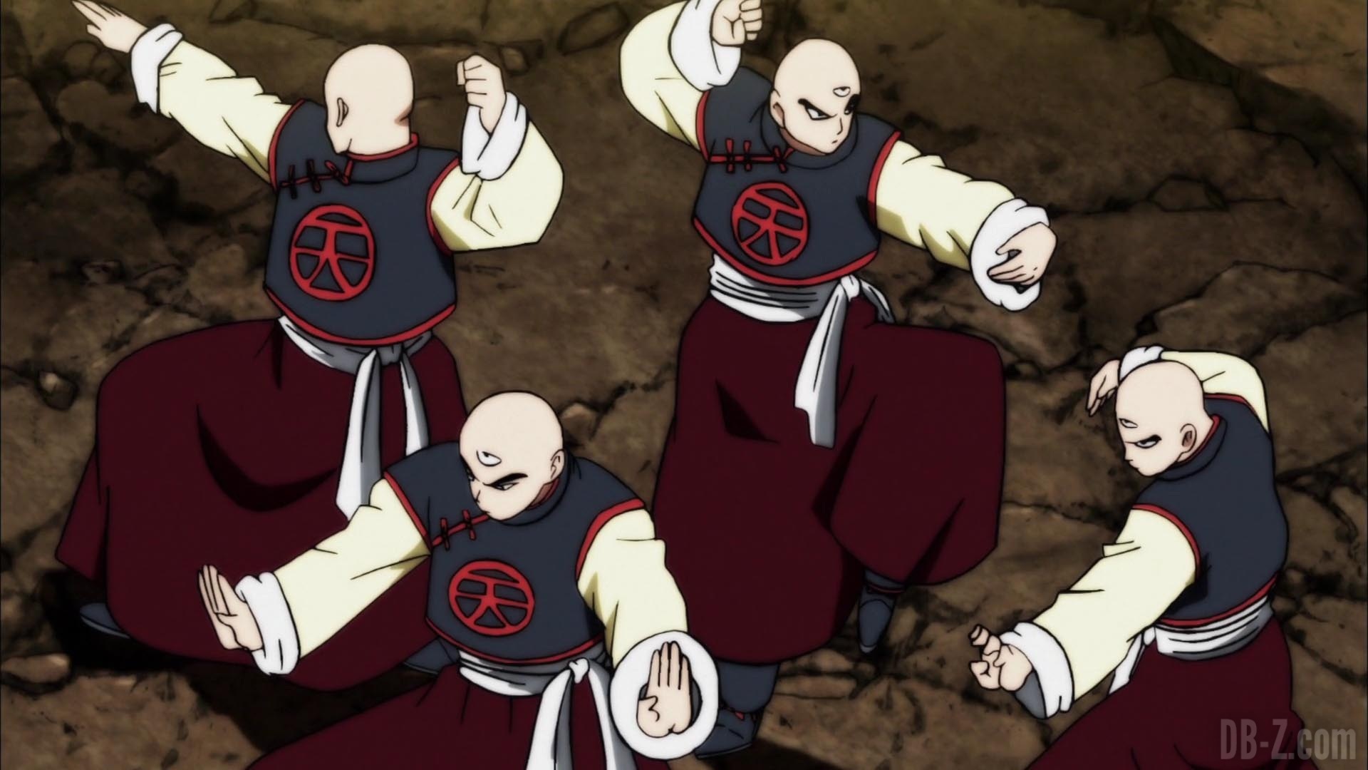 Il s’avère que Prum est simplement un leurre. Il effectue une reconnaissance, mais lorsqu’il s’agit d’attaquer, il reflète juste les attaques de Ki d’Hermila, ce qui signifie que Goku et Vegeta auraient dû attaquer Hermila d’abord. Vegeta dit à Goku de gérer Prum et essaie d’aller s’occuper de Hermila, mais Hermila continue de changer de position. Pour le retrouver, Tenshinhan se divise en quatre personnes : avec toutes des yeux supplémentaires, il peut suivre Hermila, mais diviser son pouvoir et sa vitesse par quatre l’a laissé sans défense contre les attaques d’Hermila. Il est maintenant question de savoir s’il peut rejoindre Hermila avant que tous ses clones ne soient abattus.