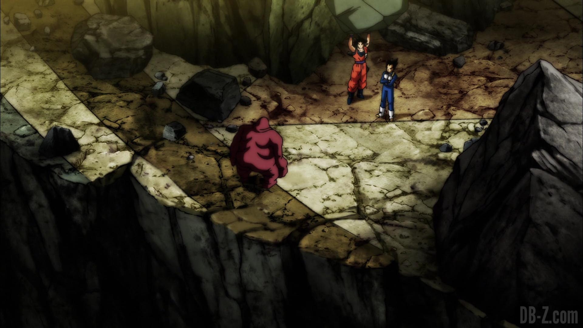 Bien que Prum et Hermila aient été éliminés, l’Univers 7 a perdu son deuxième membre de l’équipe. Pourtant, Vegeta est indifférent, disant qu’il doit simplement éliminer tous les ennemis restants lui-même. Goku est d’accord pour dire qu’ils auront juste à s’occuper de la part de Krilin et de Tenshinhan. Plus que 32 minutes dans le Tournoi du Pouvoir ! (Merci à Herms pour son résumé en anglais)