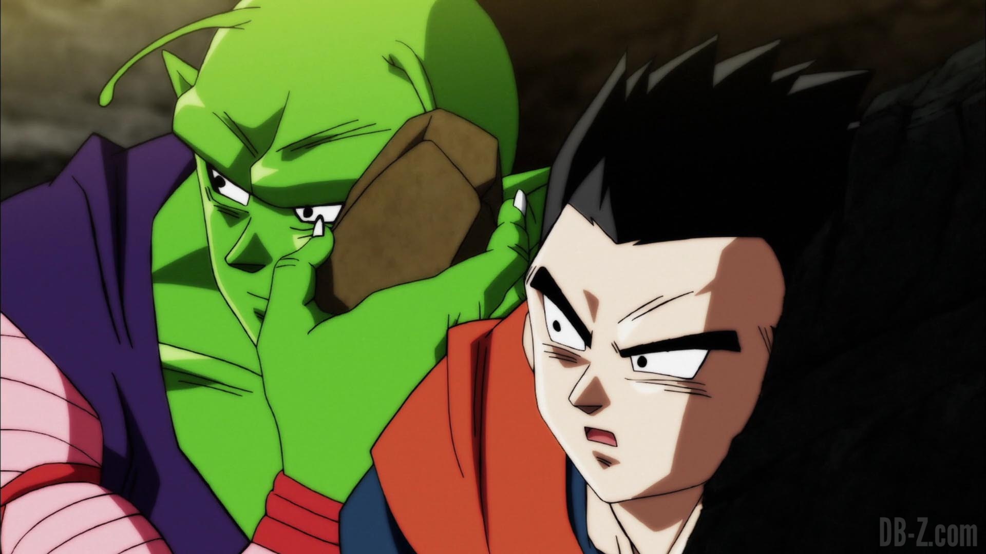 Pendant ce temps, Piccolo a perdu ses deux bras contre les attaques du tireur d’élite. Il les fait repousser, mais la régénération fait baisser son endurance. Mais sa seule préoccupation est que Gohan soit en sécurité. Toutefois, il est maintenant confirmé que le tireur d’élite les suivait par leur chaleur corporelle ! Les deux commencent à réchauffer divers endroits dans les décombres pour créer de multiples sources de chaleur, ce qui perturbe le tireur d’élite. Mais le tireur d’élite réagit en déclenchant un grand nombre de tirs à la fois, pour les faire sortir de leur cachette.