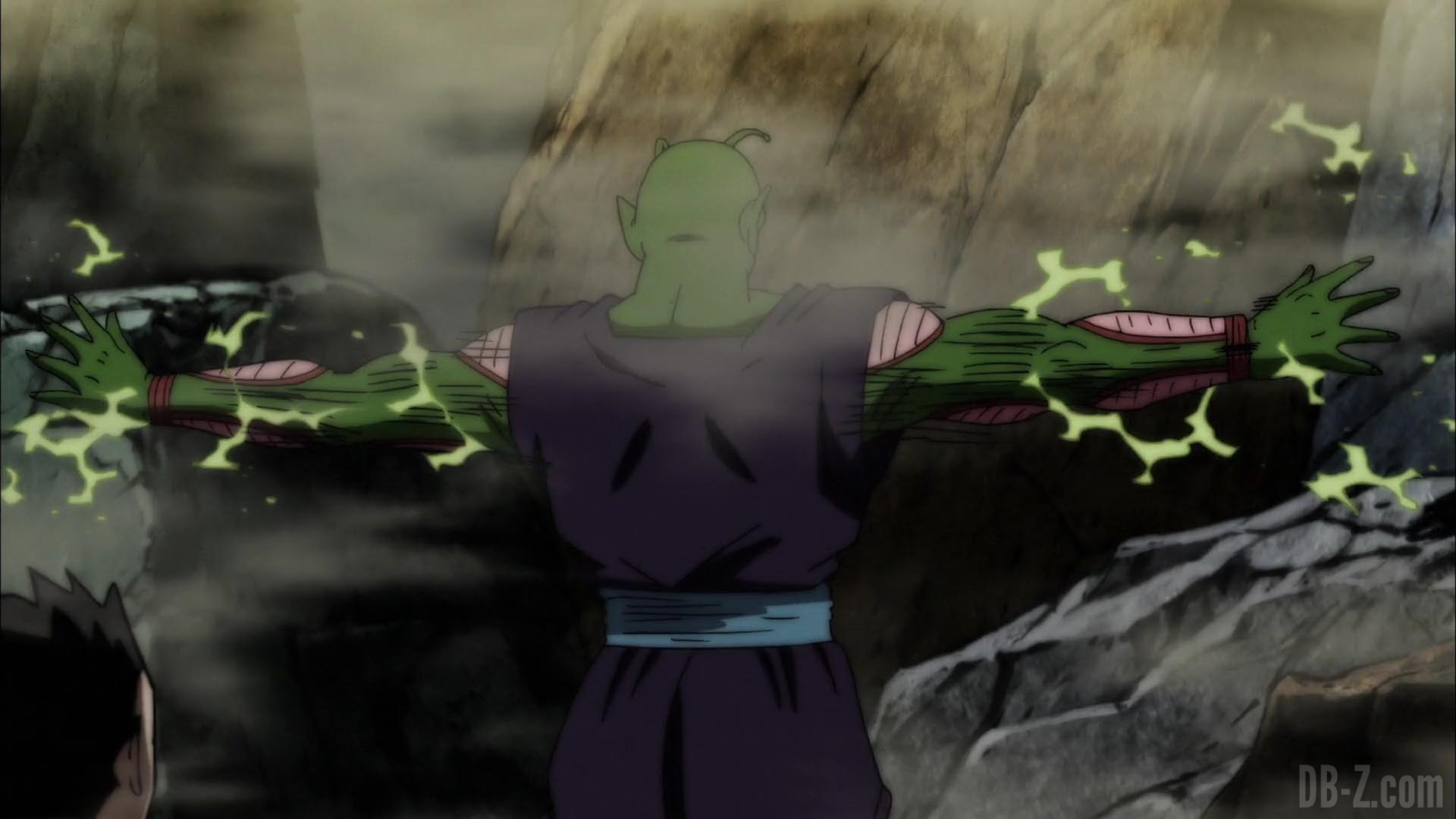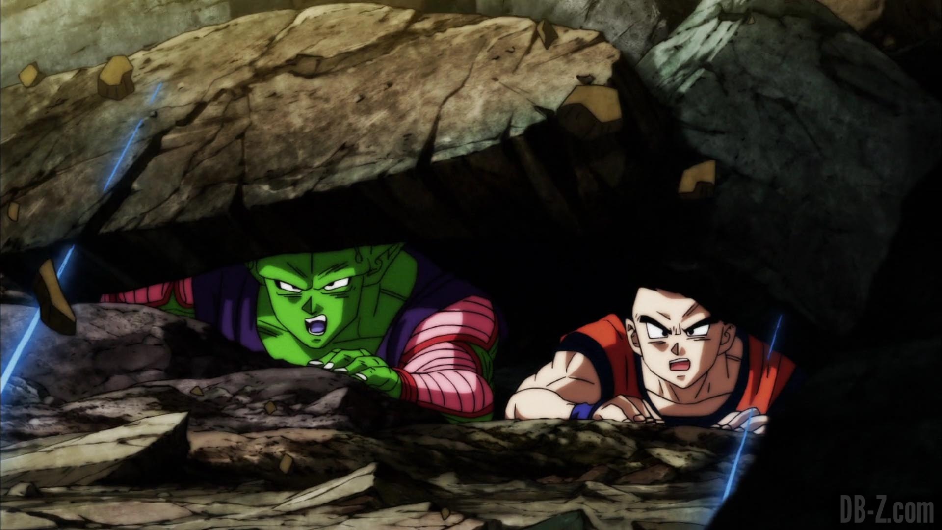 Comme il n’y a pas de décombres assez grand à utiliser pour détecter la direction de l’ennemi, Piccolo demande à Gohan de lancer un rocher dans l’air, et l’attaque pour produire de la fumée pour dissimuler leur approche. Sur leur chemin, ils découvrent une boule flottante et se demandent si le tireur d’élite l’utilise pour les suivre. En effet, un autre coup arrive bientôt, et Piccolo détruit la boule. Il se demande comment ils peuvent encore être suivis dans cette fumée. Est-ce une détection par la chaleur ?