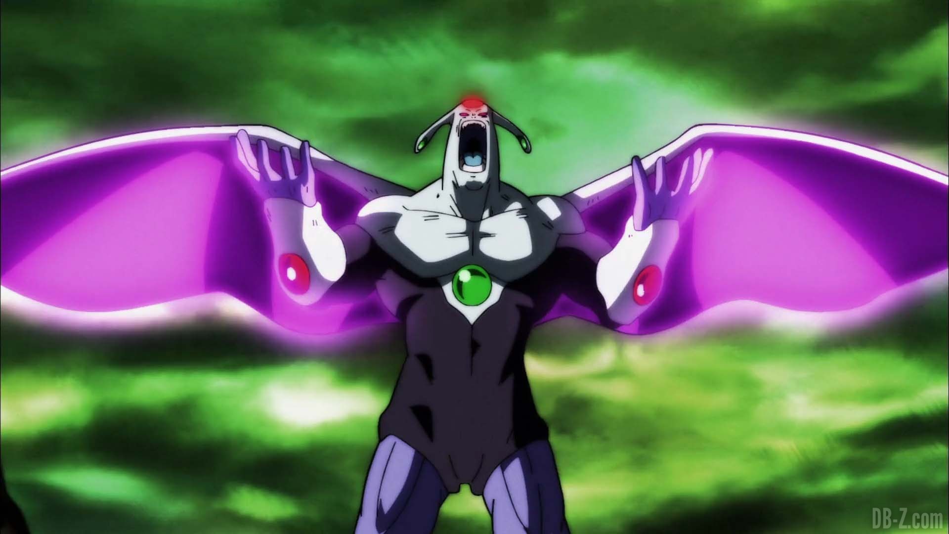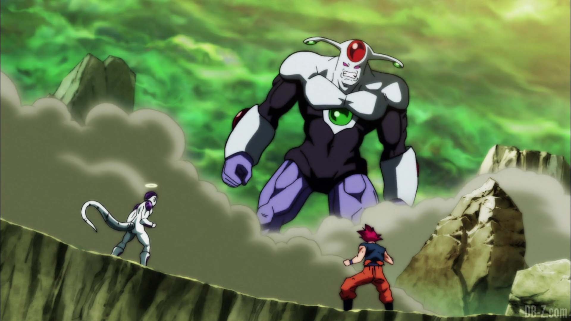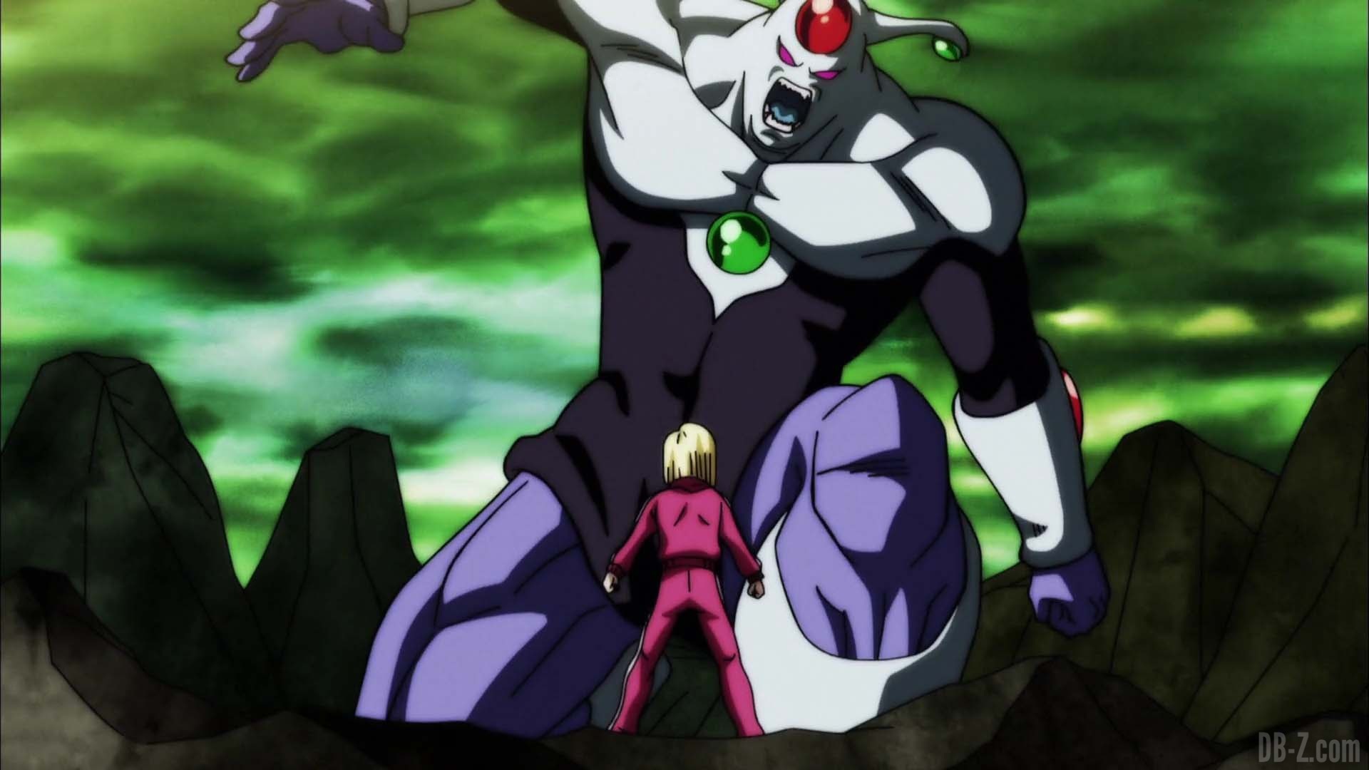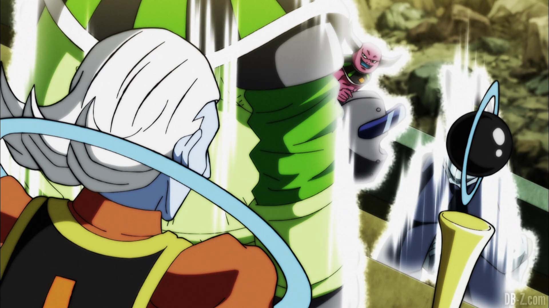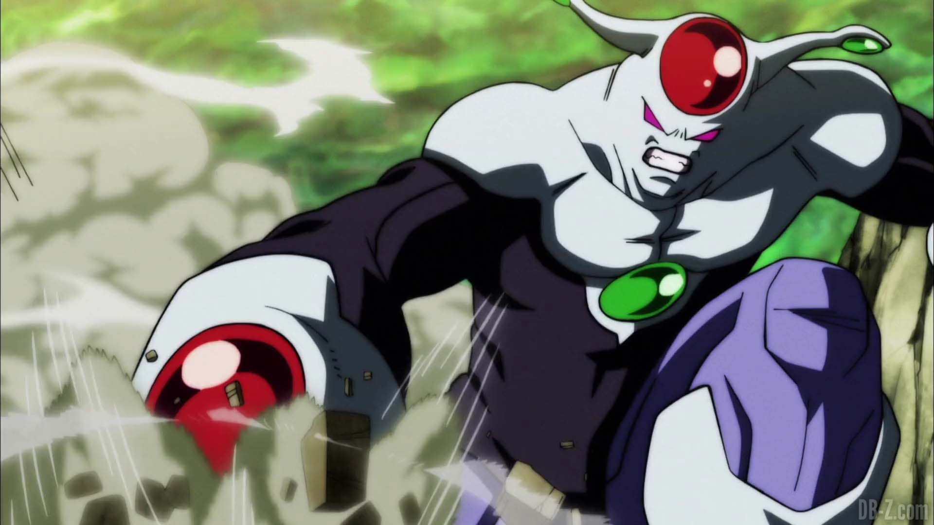 Synopsis 3 : Paparoni crie qu’il leur montrera la technique secrète ultime de l’Univers 3, et un flash intense enveloppe son corps. Goku, Gohan, Vegeta et les autres utilisent leurs mains pour se protéger de l’intense lumière, et C-17 et C-18 se baissent. Quand la lumière se dissipe et que leur vision revient, ils voient la forme gigantesque d’Aniraza.