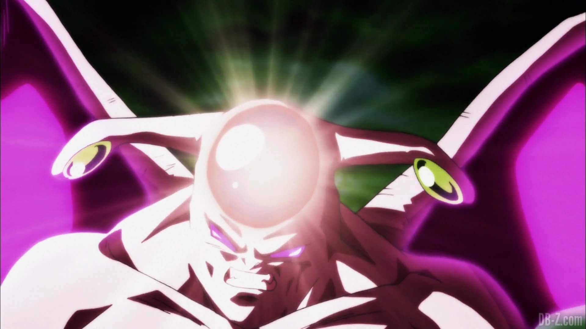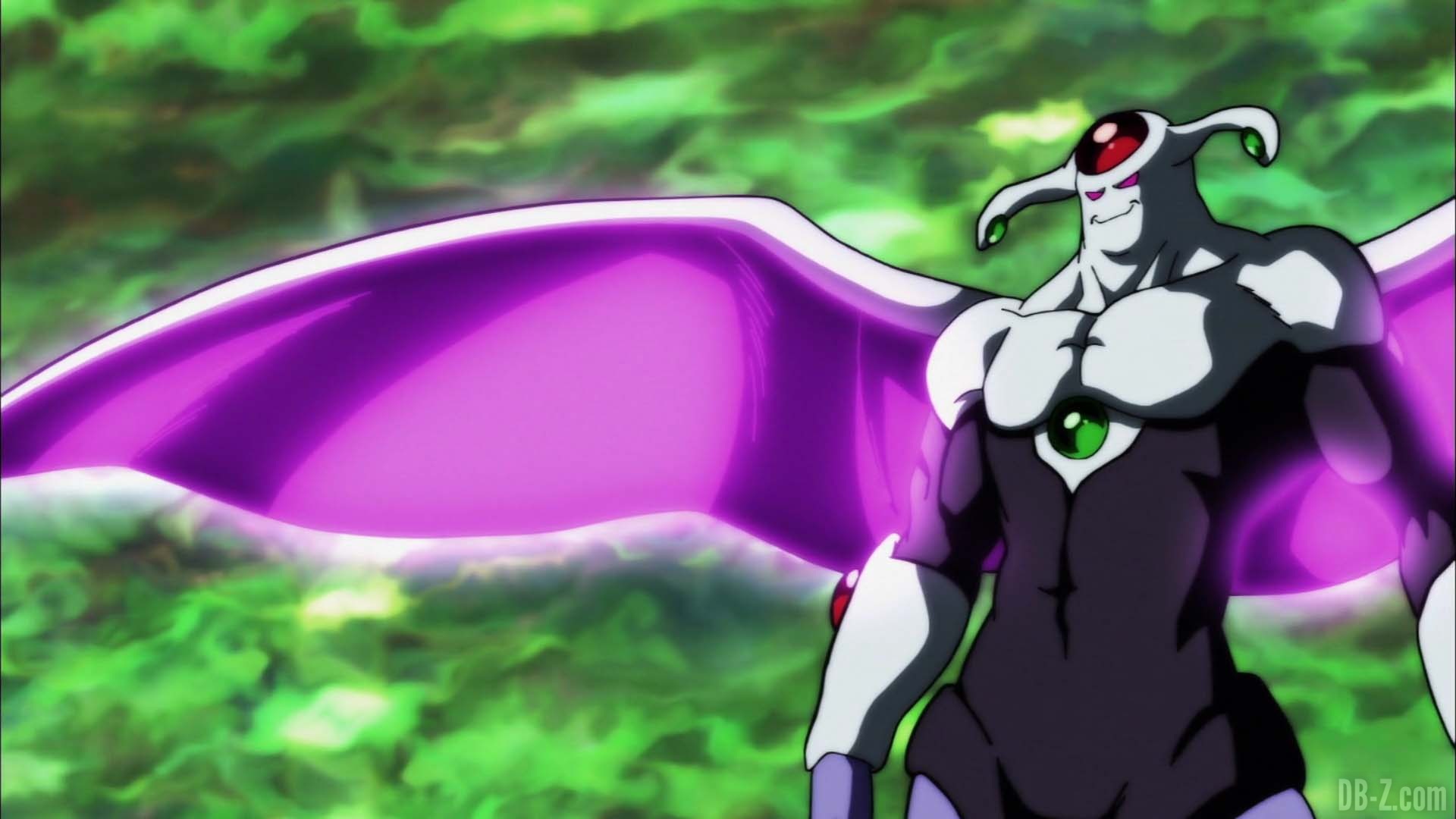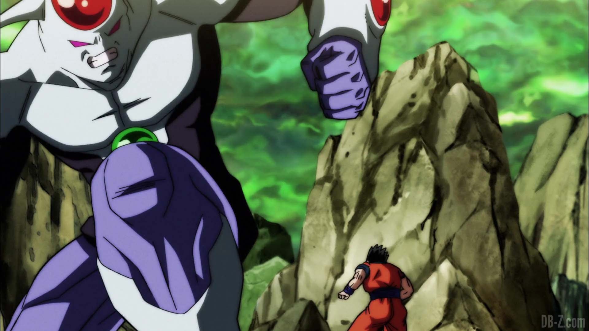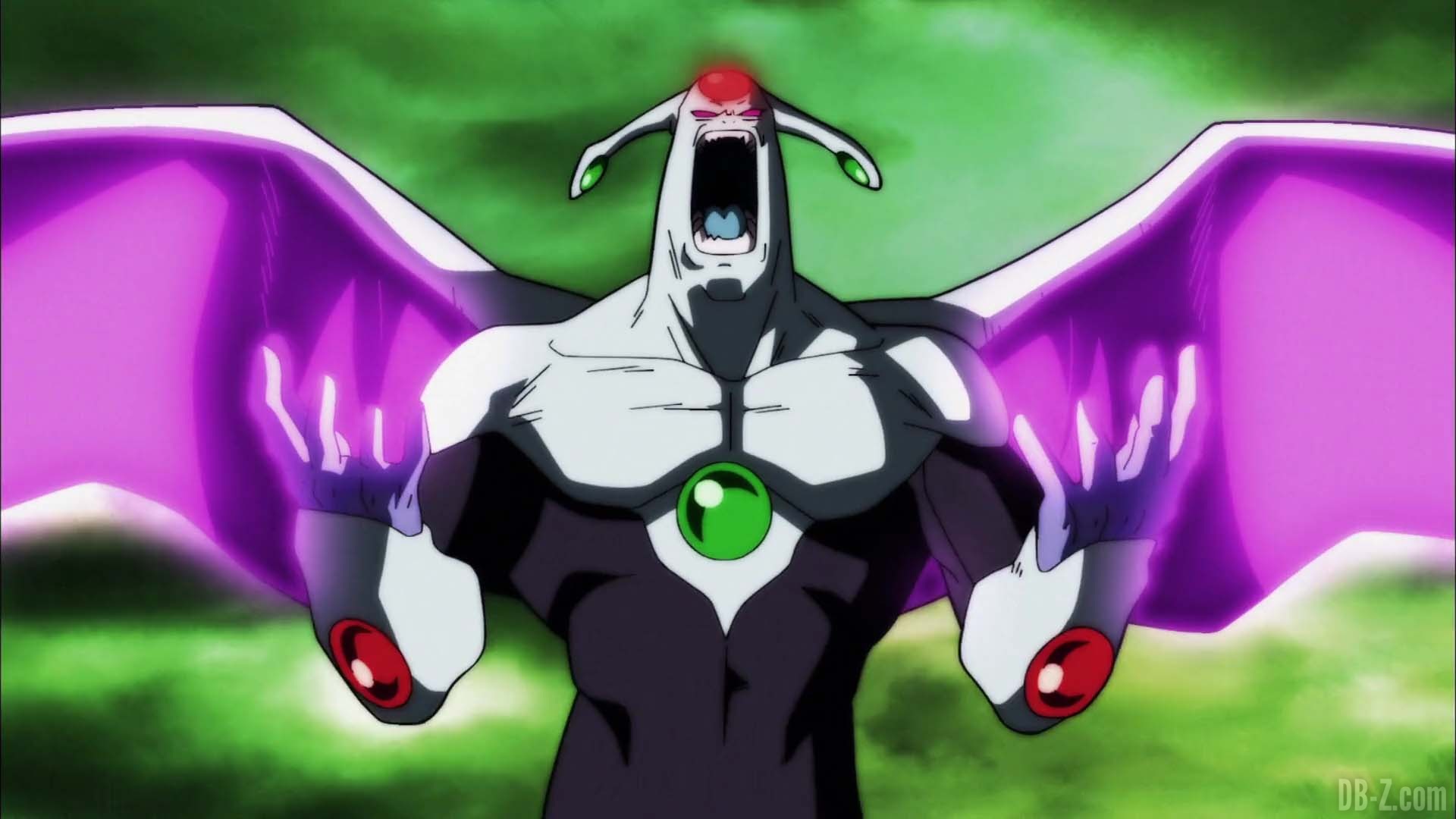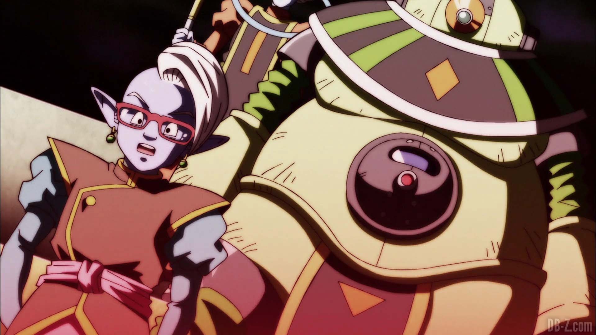 Synopsis 3 : Paparoni crie qu’il leur montrera la technique secrète ultime de l’Univers 3, et un flash intense enveloppe son corps. Goku, Gohan, Vegeta et les autres utilisent leurs mains pour se protéger de l’intense lumière, et C-17 et C-18 se baissent. Quand la lumière se dissipe et que leur vision revient, ils voient la forme gigantesque d’Aniraza.