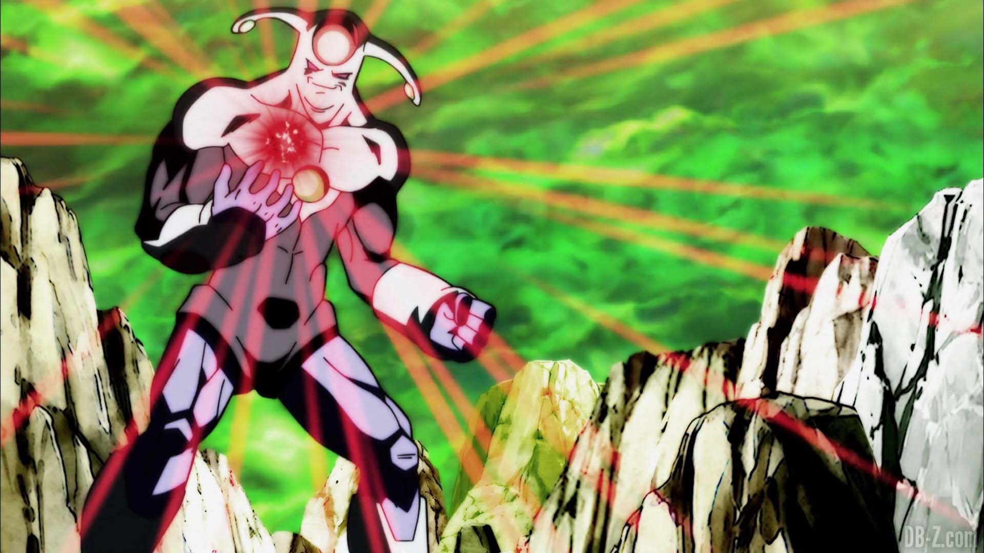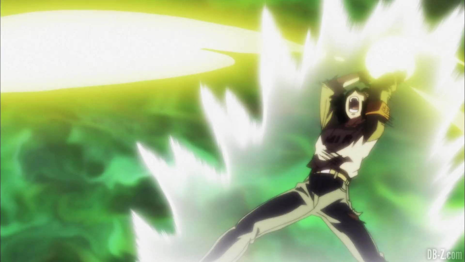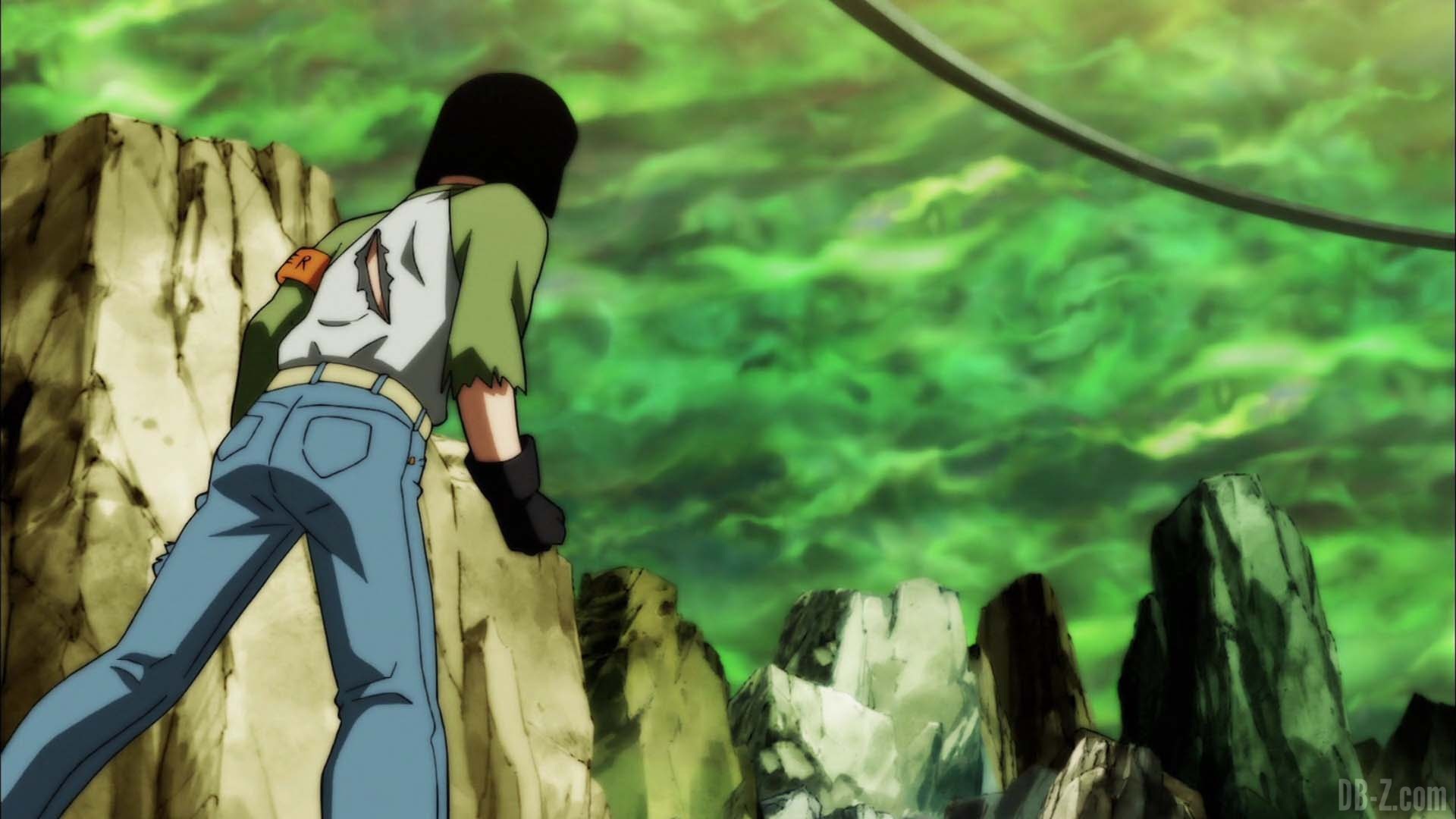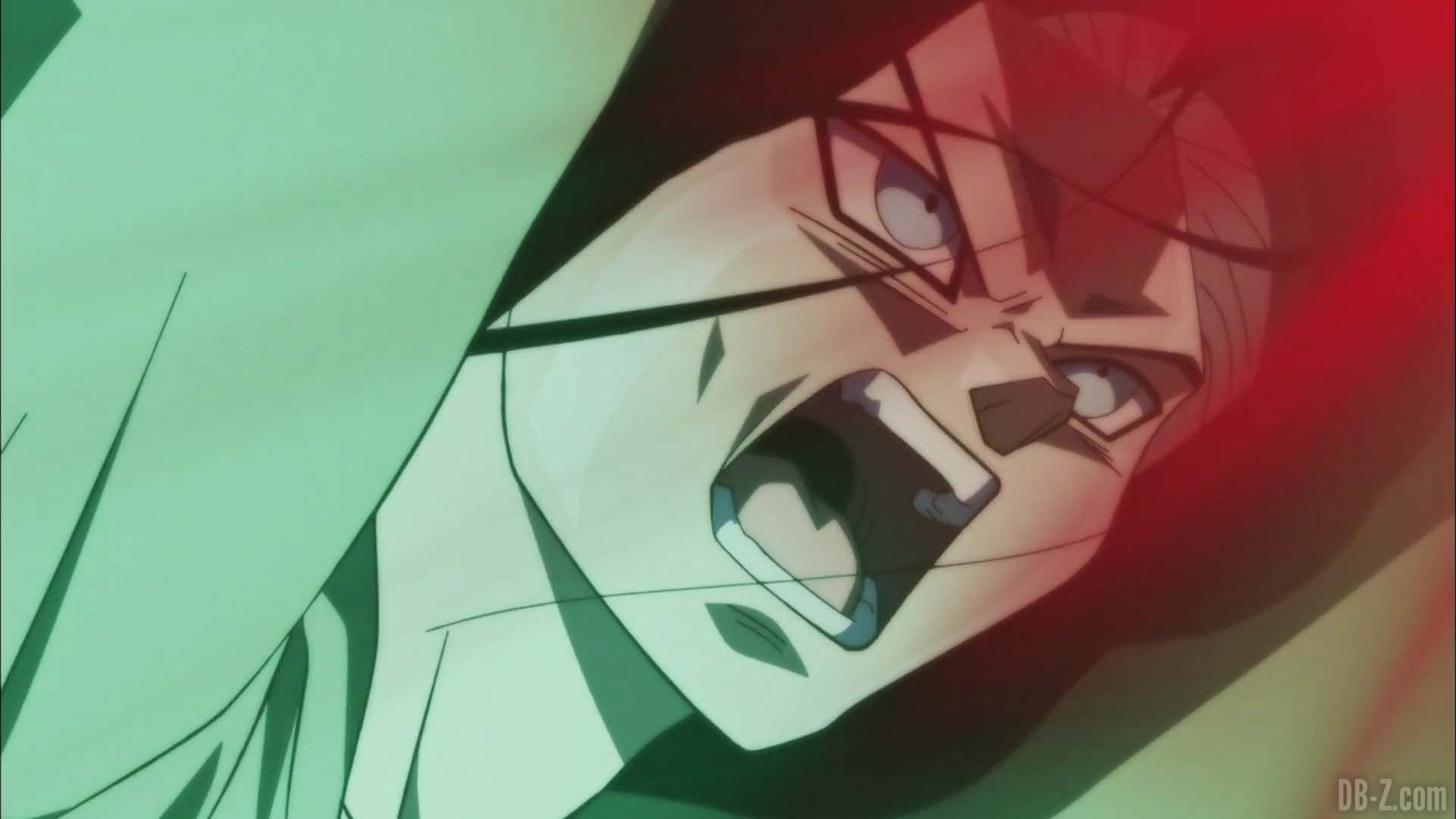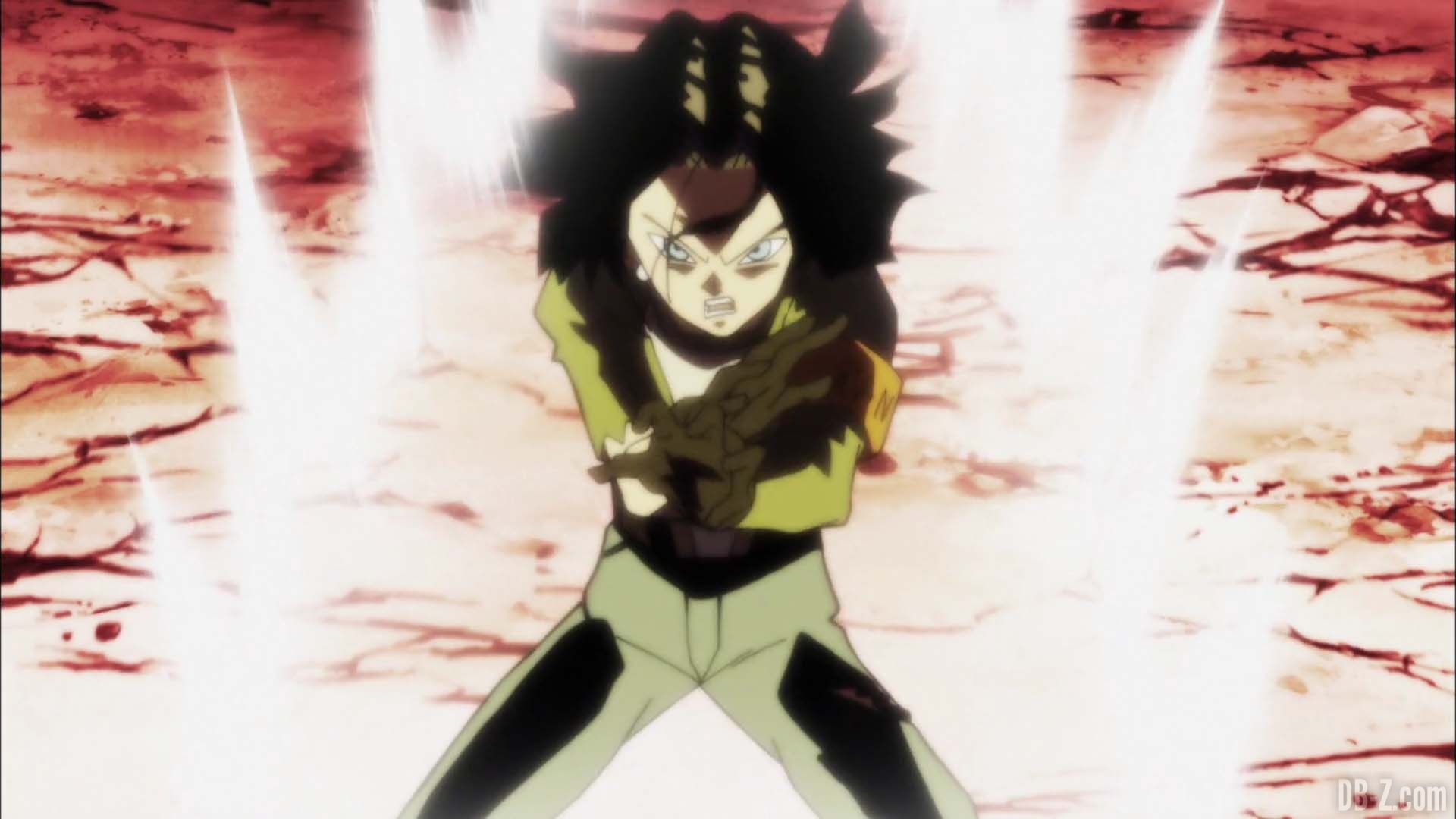 Synopsis 3 : Paparoni crie qu’il leur montrera la technique secrète ultime de l’Univers 3, et un flash intense enveloppe son corps. Goku, Gohan, Vegeta et les autres utilisent leurs mains pour se protéger de l’intense lumière, et C-17 et C-18 se baissent. Quand la lumière se dissipe et que leur vision revient, ils voient la forme gigantesque d’Aniraza.