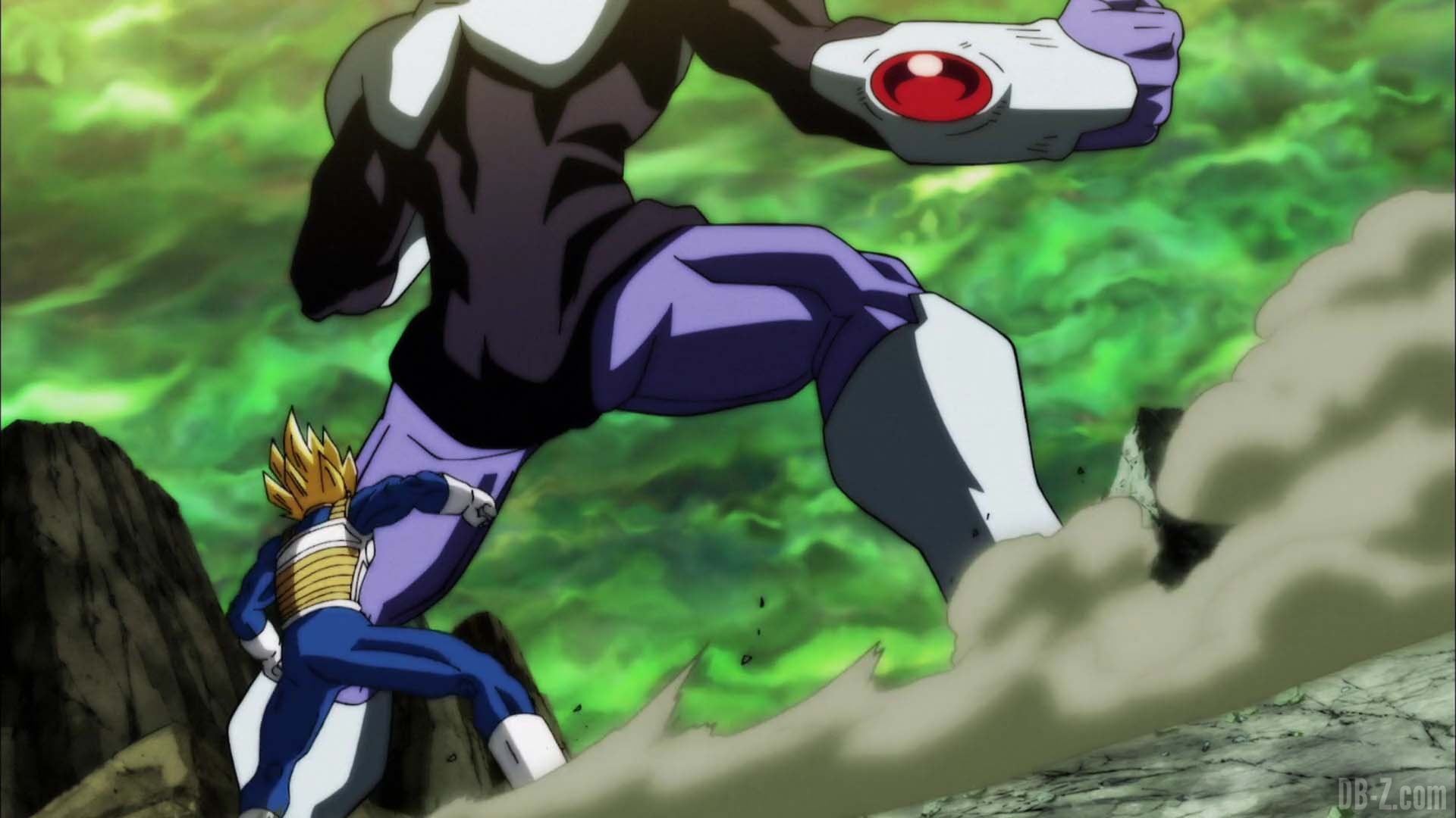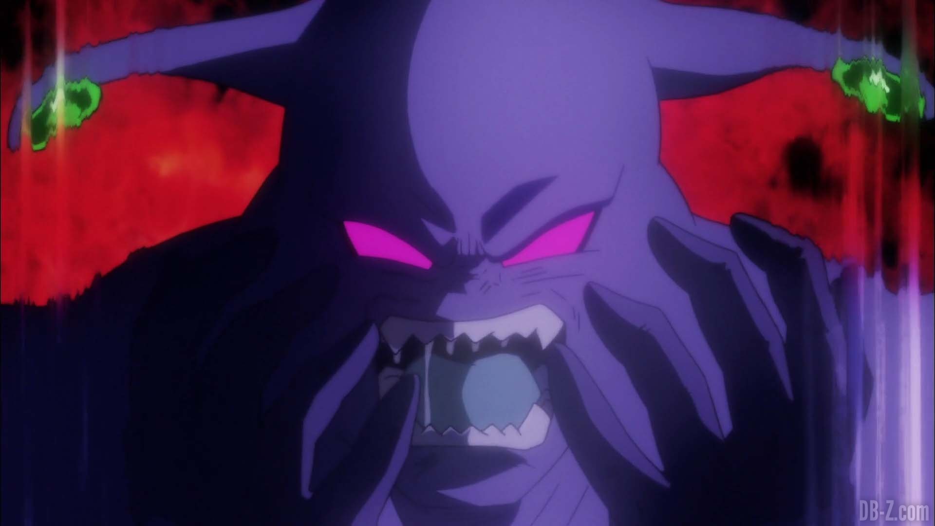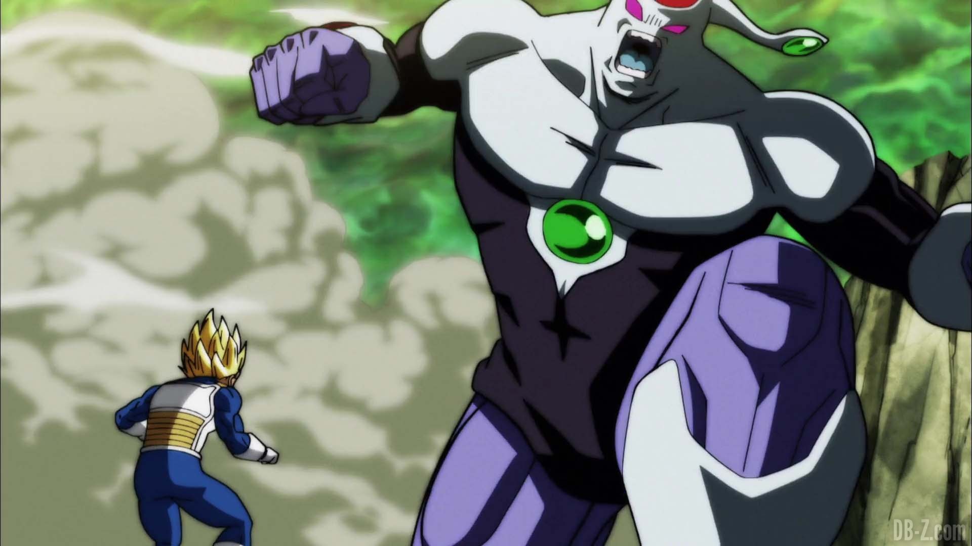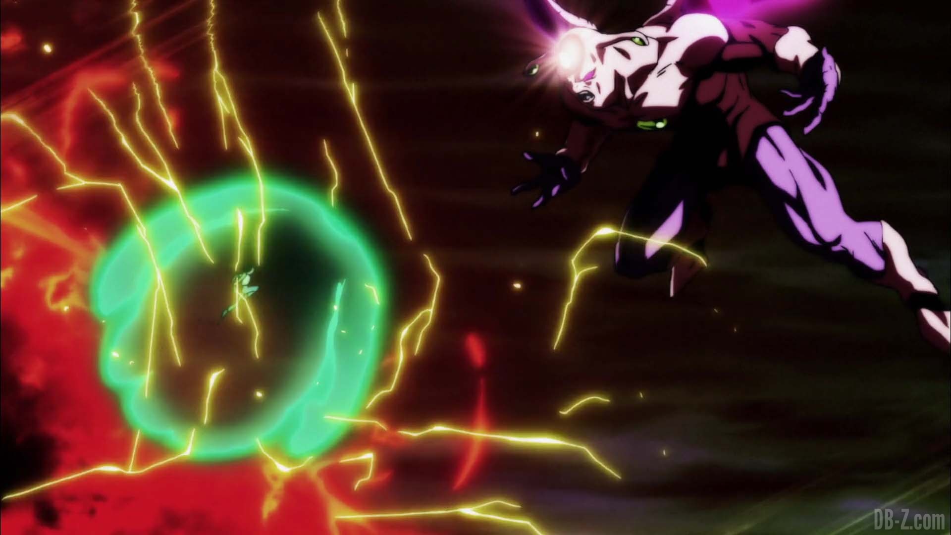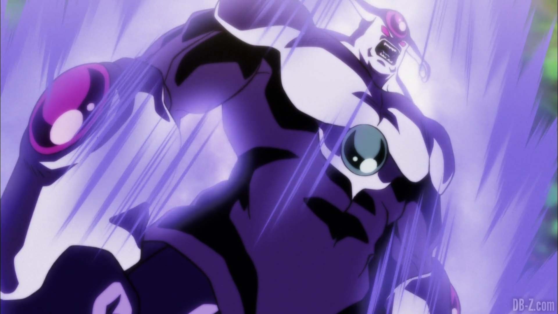 Synopsis 3 : Paparoni crie qu’il leur montrera la technique secrète ultime de l’Univers 3, et un flash intense enveloppe son corps. Goku, Gohan, Vegeta et les autres utilisent leurs mains pour se protéger de l’intense lumière, et C-17 et C-18 se baissent. Quand la lumière se dissipe et que leur vision revient, ils voient la forme gigantesque d’Aniraza.