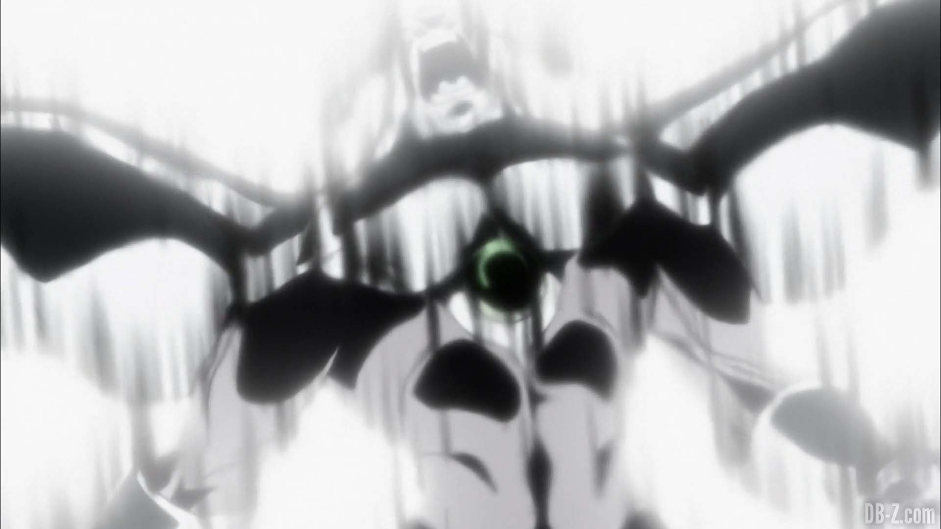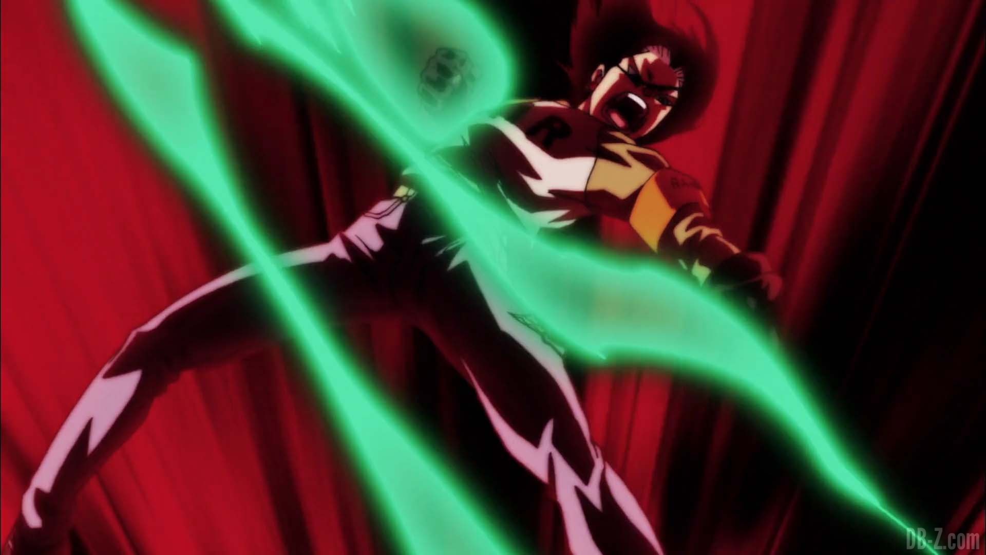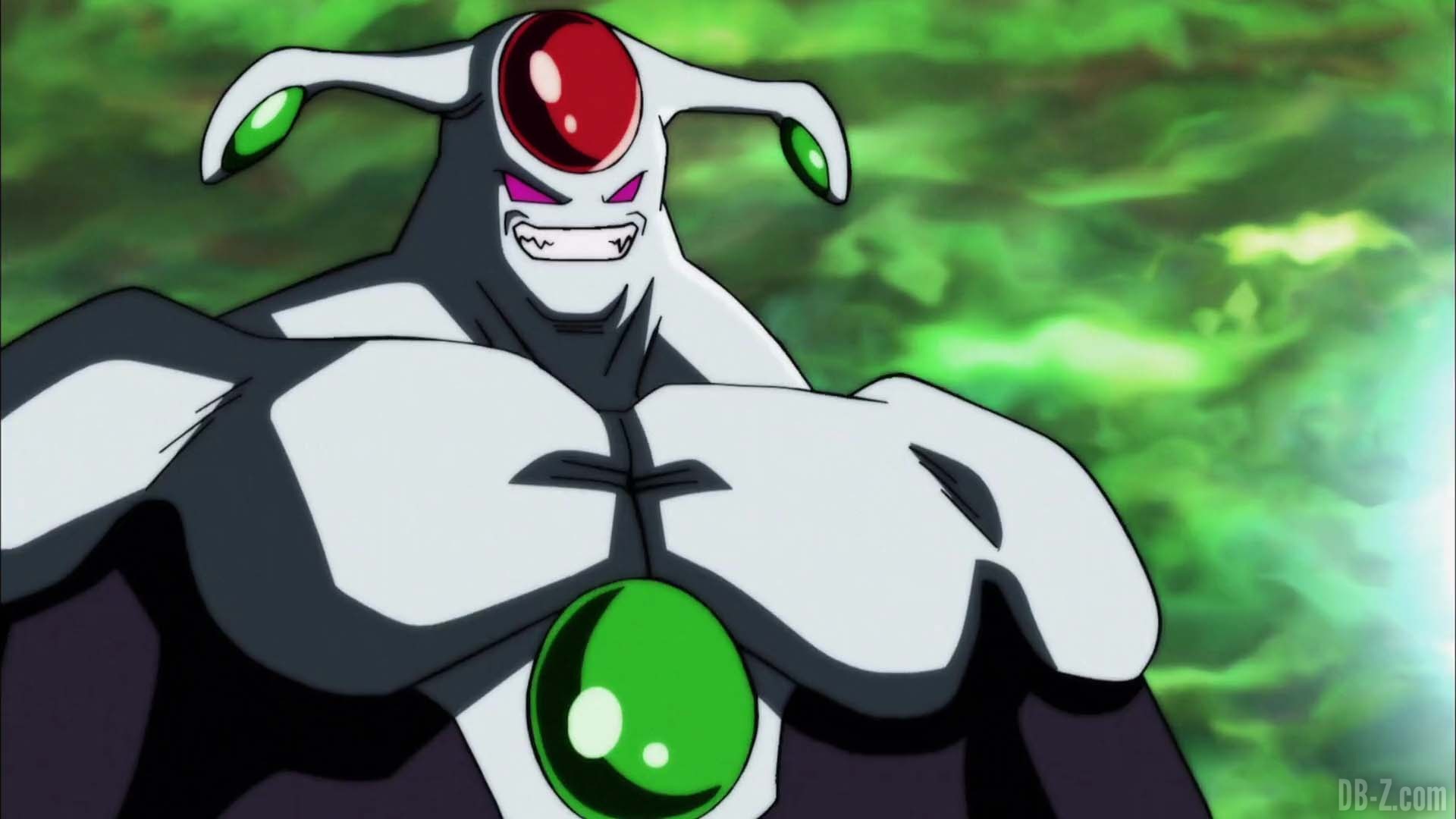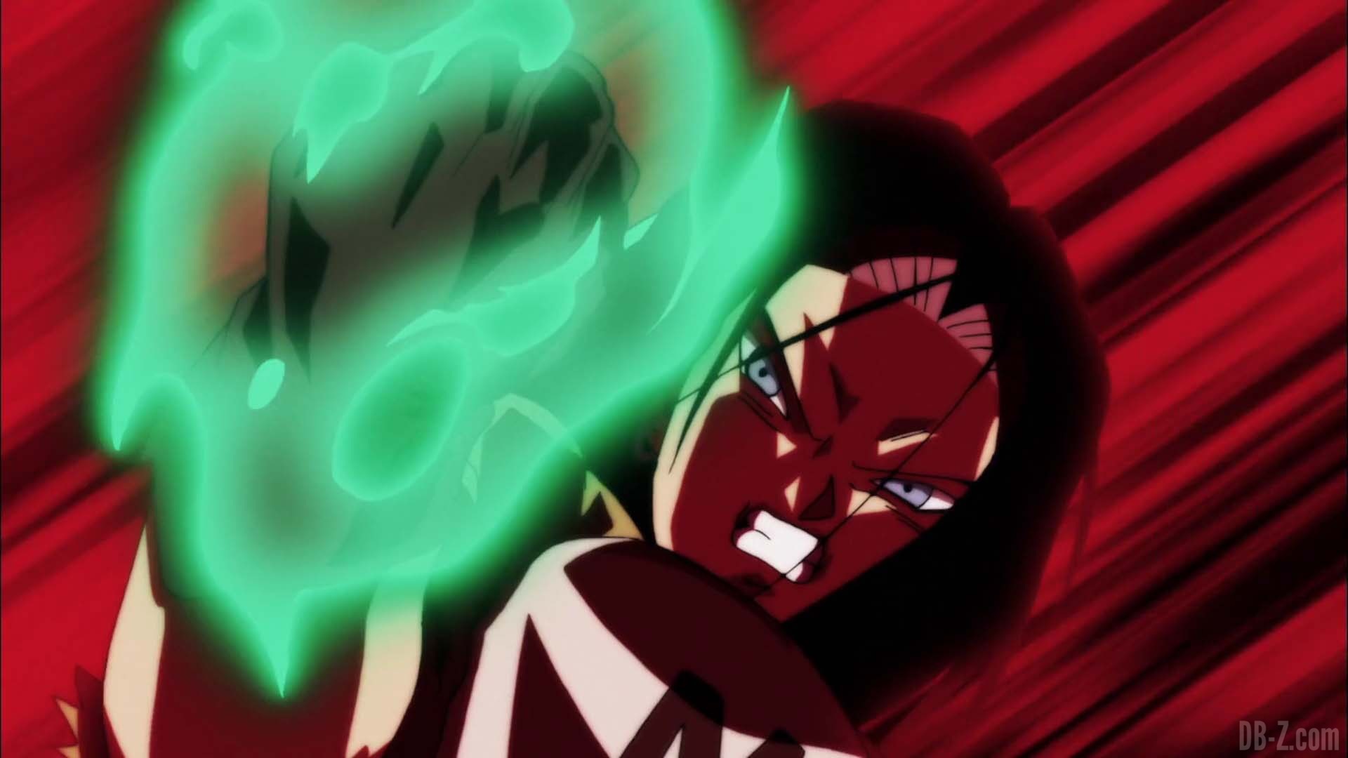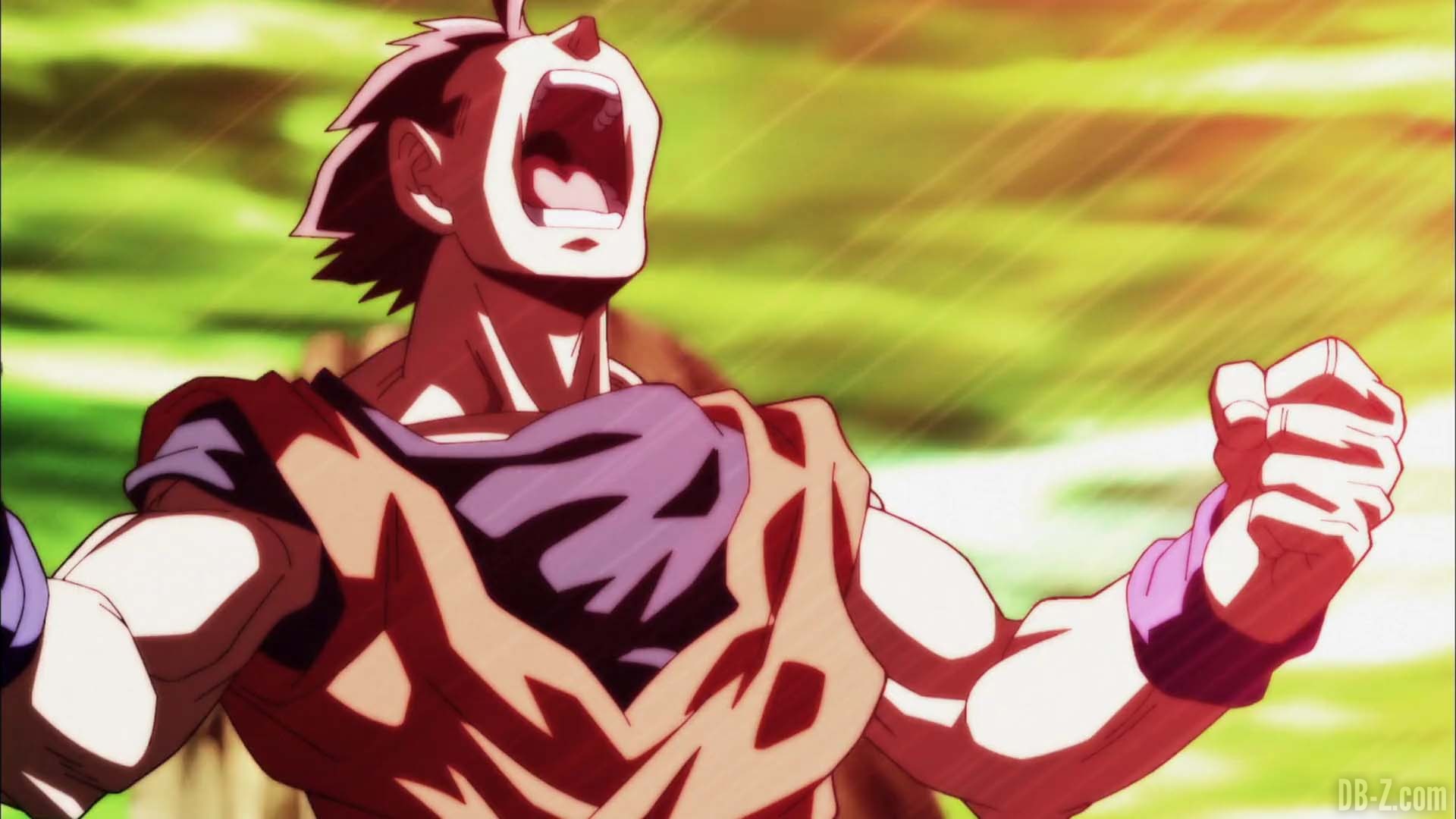 Synopsis 3 : Paparoni crie qu’il leur montrera la technique secrète ultime de l’Univers 3, et un flash intense enveloppe son corps. Goku, Gohan, Vegeta et les autres utilisent leurs mains pour se protéger de l’intense lumière, et C-17 et C-18 se baissent. Quand la lumière se dissipe et que leur vision revient, ils voient la forme gigantesque d’Aniraza.