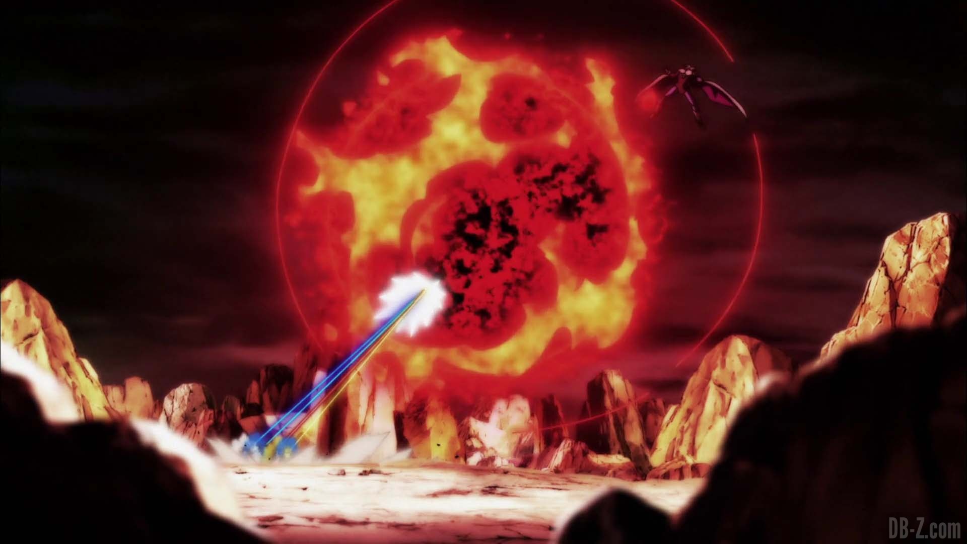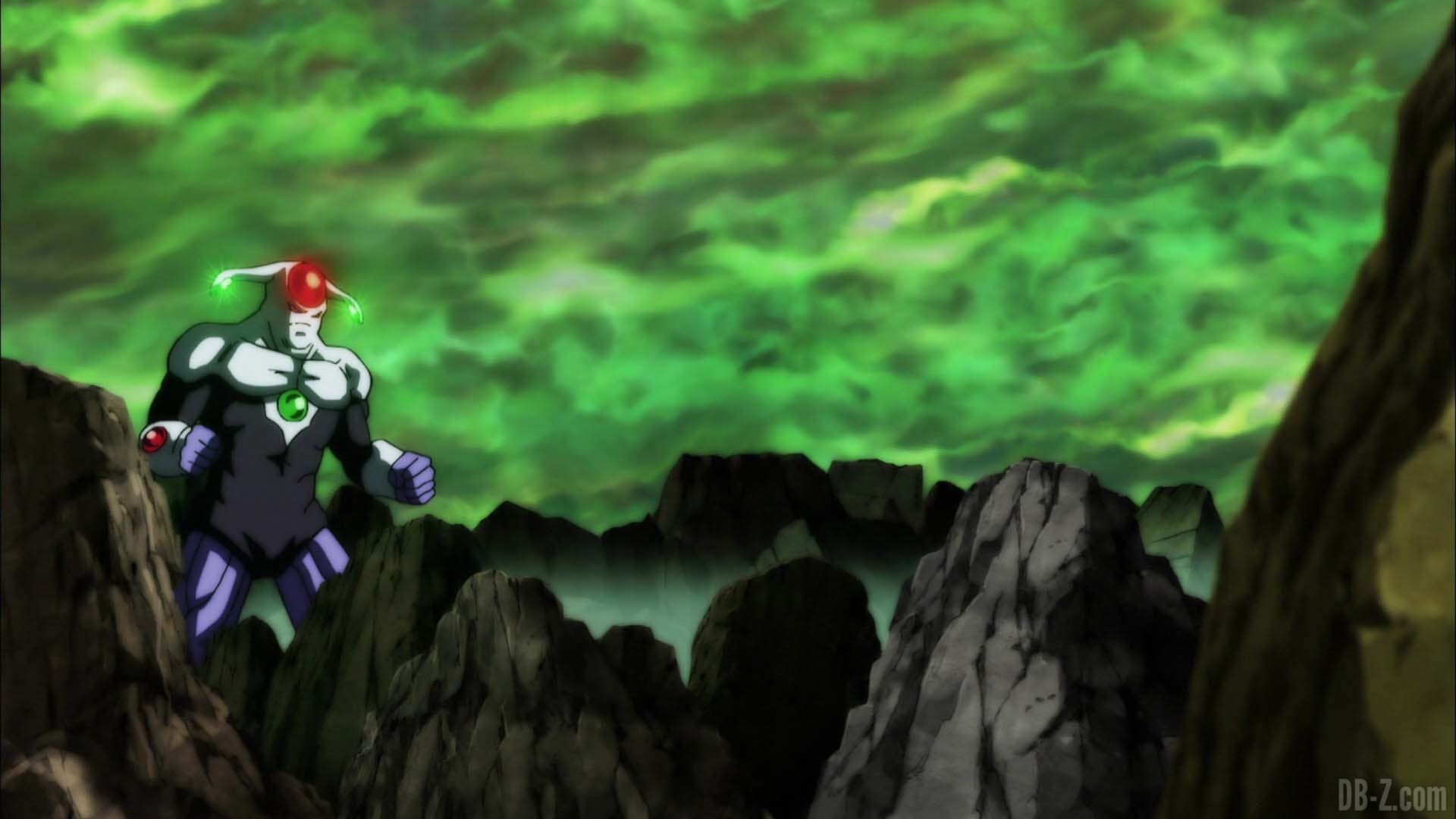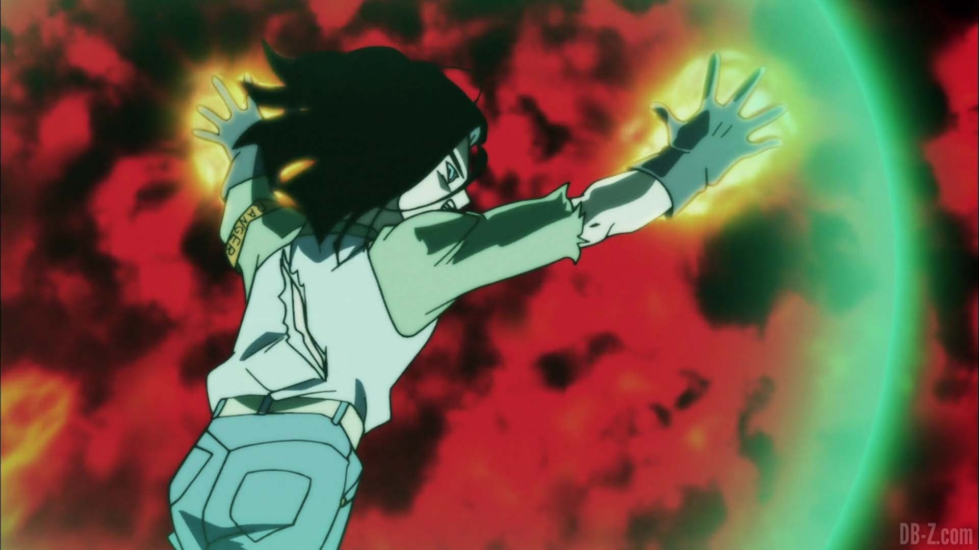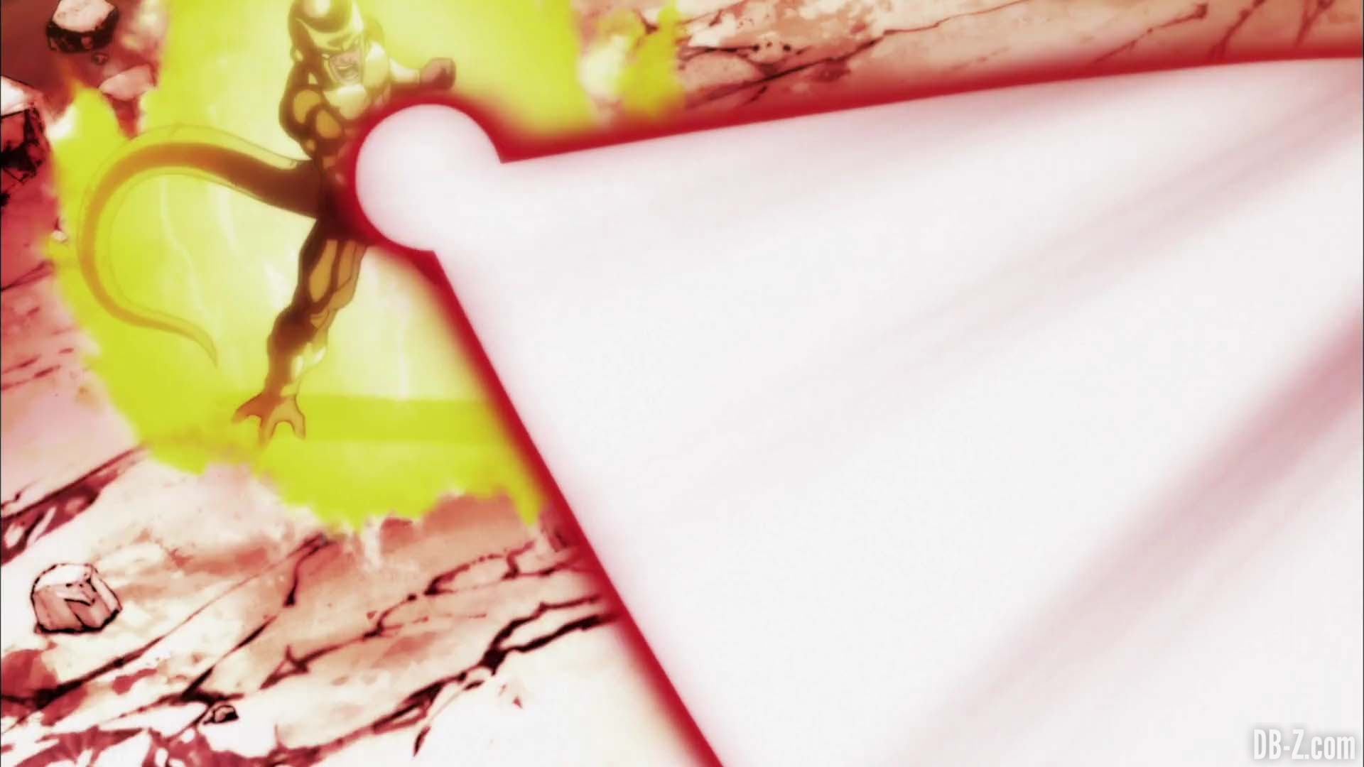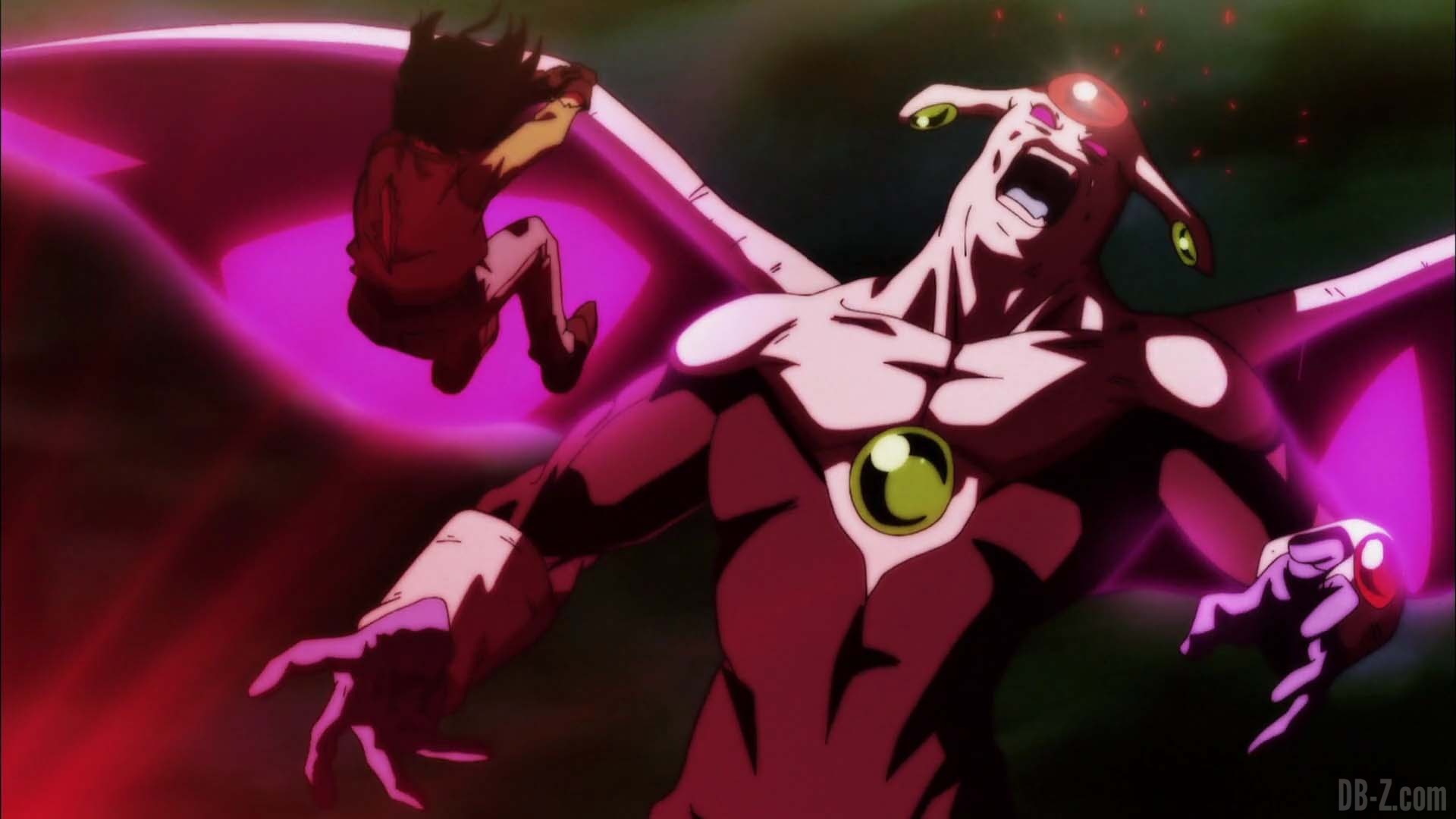 Synopsis 3 : Paparoni crie qu’il leur montrera la technique secrète ultime de l’Univers 3, et un flash intense enveloppe son corps. Goku, Gohan, Vegeta et les autres utilisent leurs mains pour se protéger de l’intense lumière, et C-17 et C-18 se baissent. Quand la lumière se dissipe et que leur vision revient, ils voient la forme gigantesque d’Aniraza.