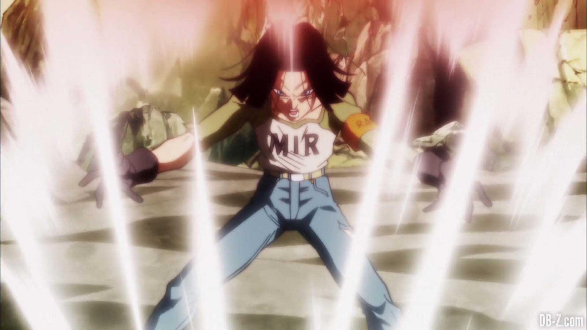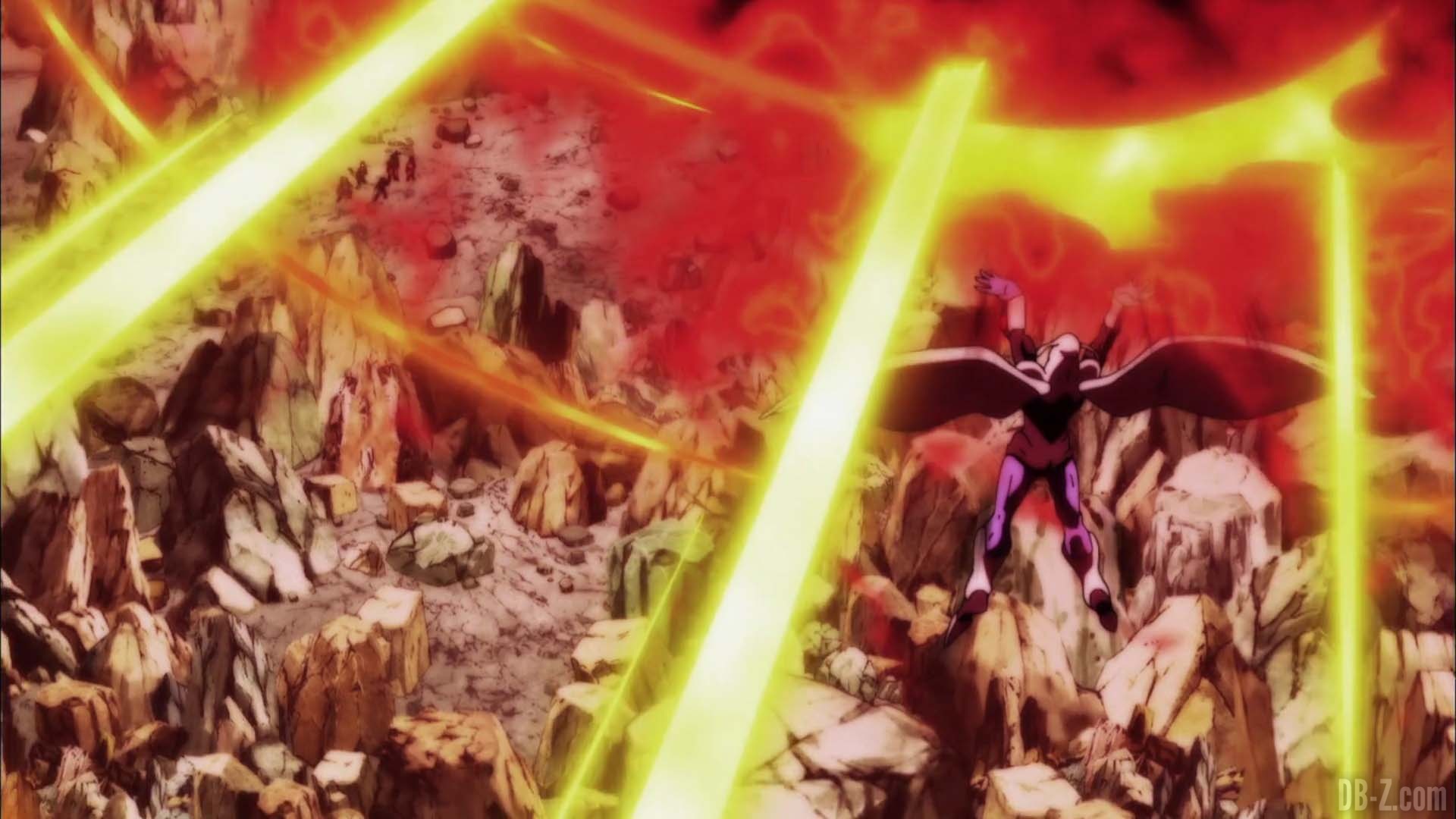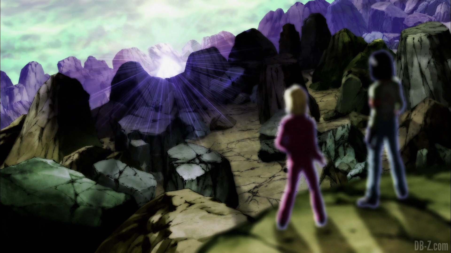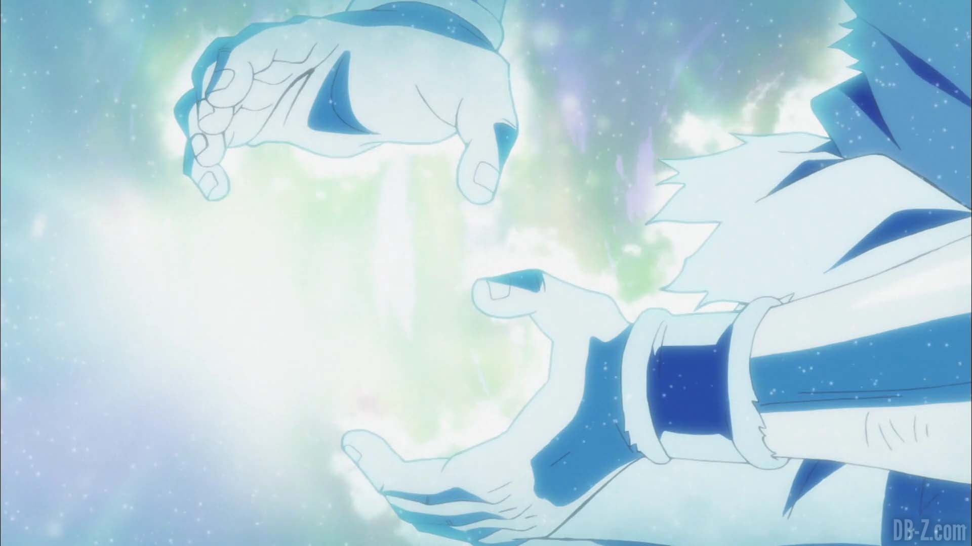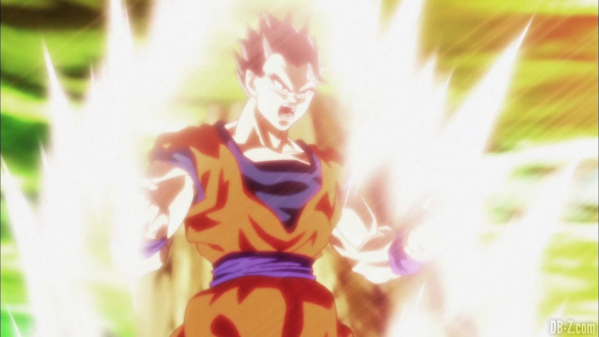 Synopsis 3 : Paparoni crie qu’il leur montrera la technique secrète ultime de l’Univers 3, et un flash intense enveloppe son corps. Goku, Gohan, Vegeta et les autres utilisent leurs mains pour se protéger de l’intense lumière, et C-17 et C-18 se baissent. Quand la lumière se dissipe et que leur vision revient, ils voient la forme gigantesque d’Aniraza.
