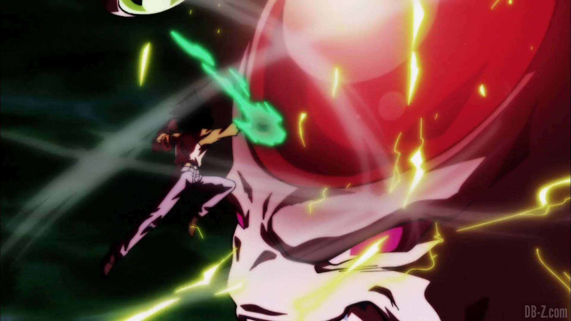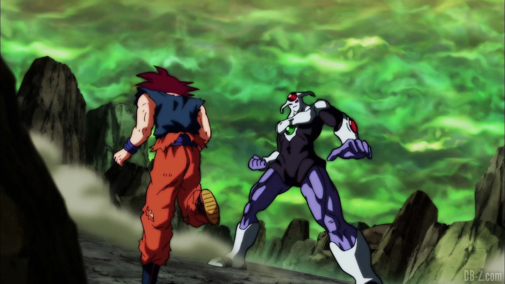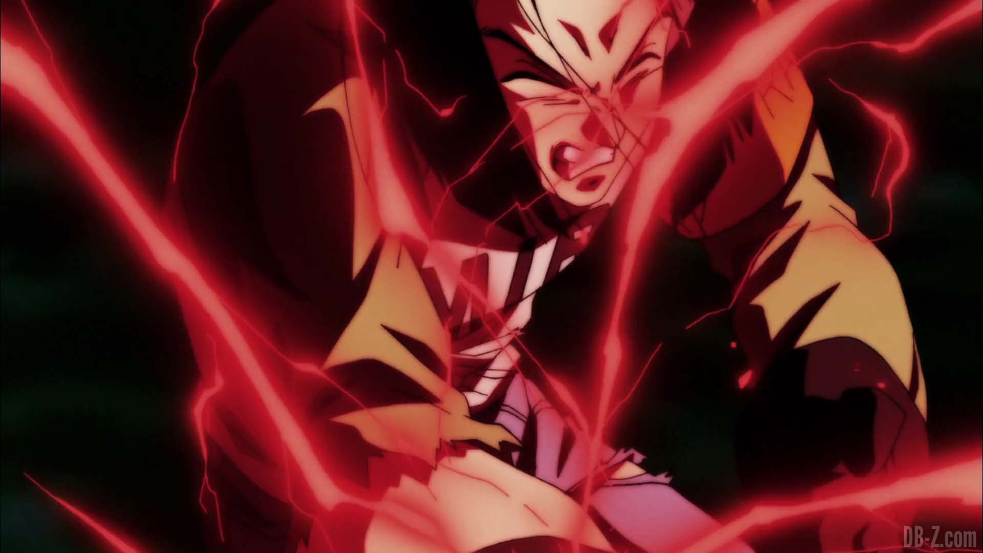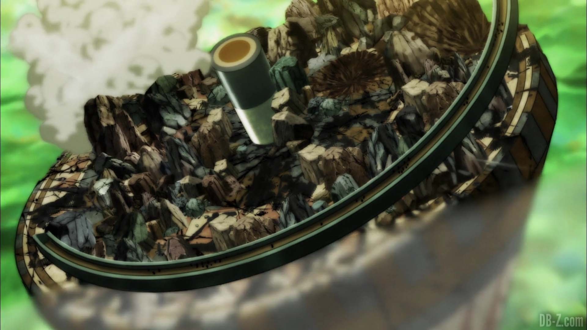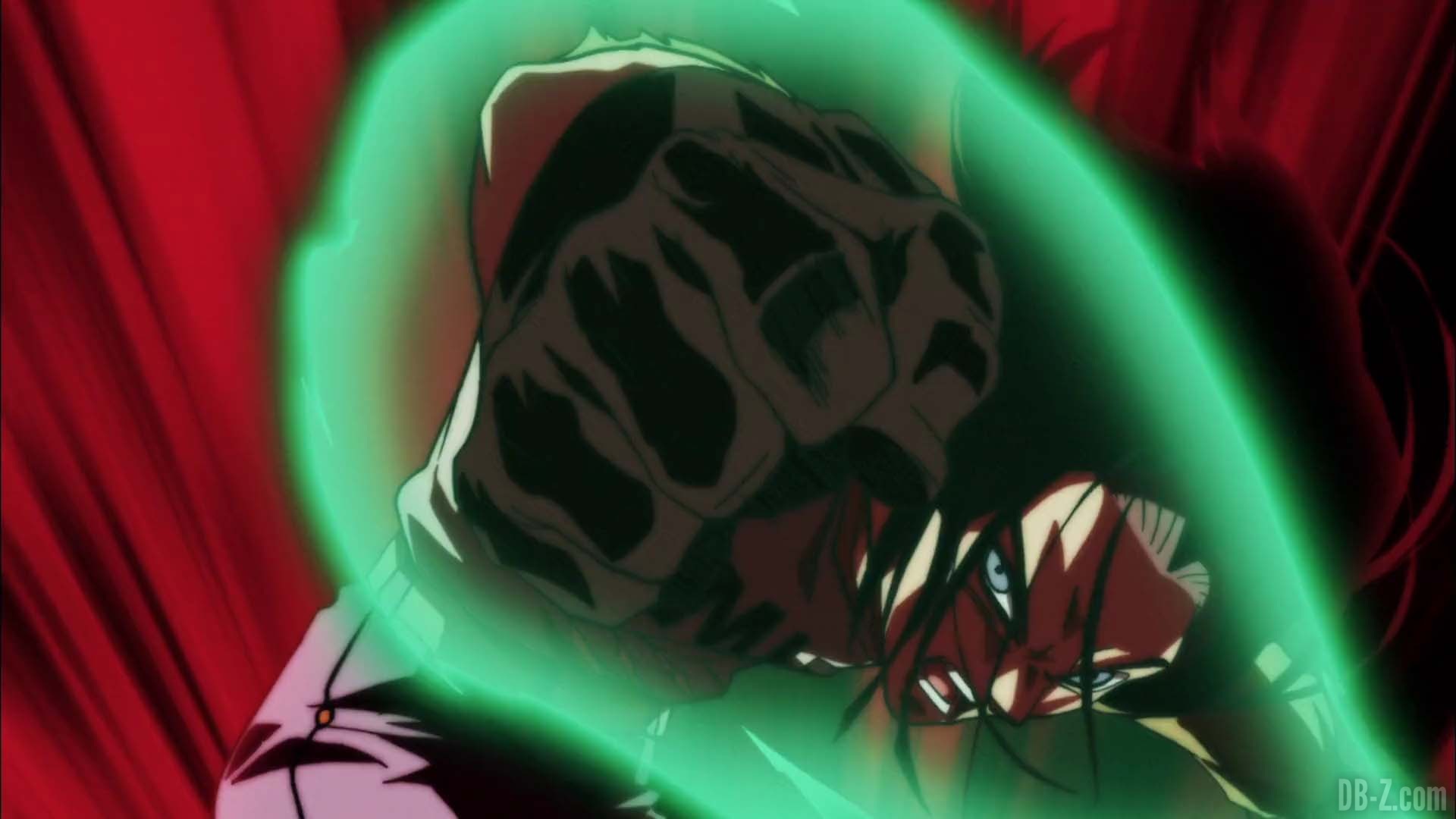 Synopsis 3 : Paparoni crie qu’il leur montrera la technique secrète ultime de l’Univers 3, et un flash intense enveloppe son corps. Goku, Gohan, Vegeta et les autres utilisent leurs mains pour se protéger de l’intense lumière, et C-17 et C-18 se baissent. Quand la lumière se dissipe et que leur vision revient, ils voient la forme gigantesque d’Aniraza.