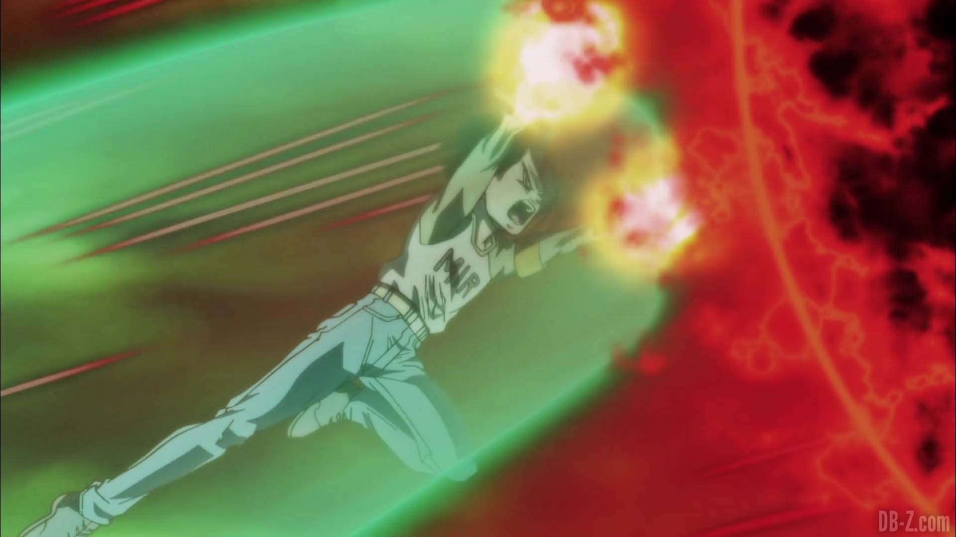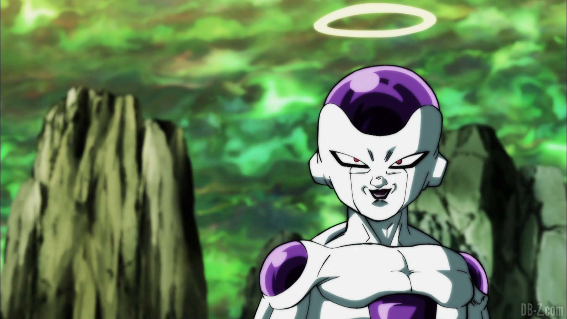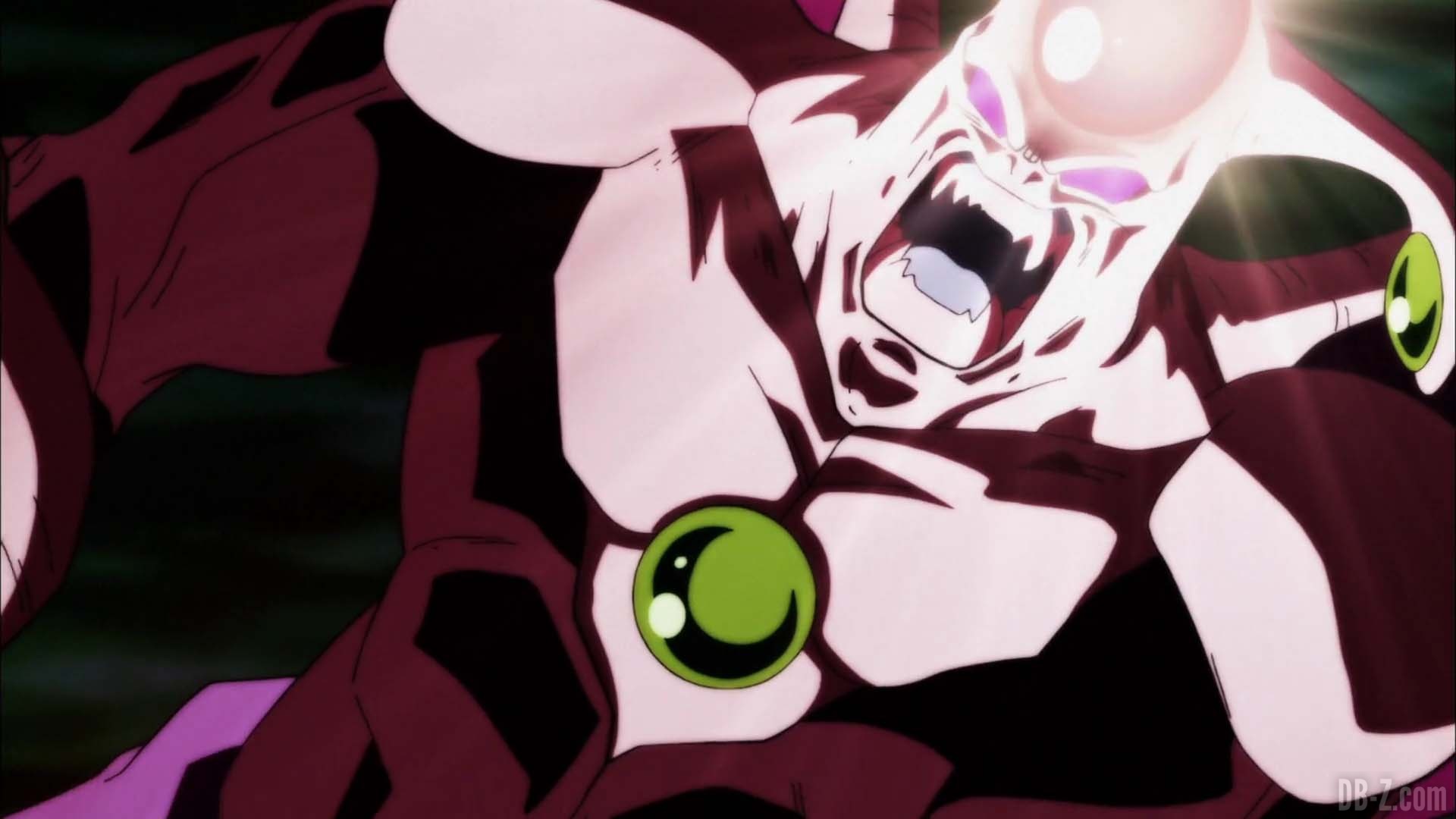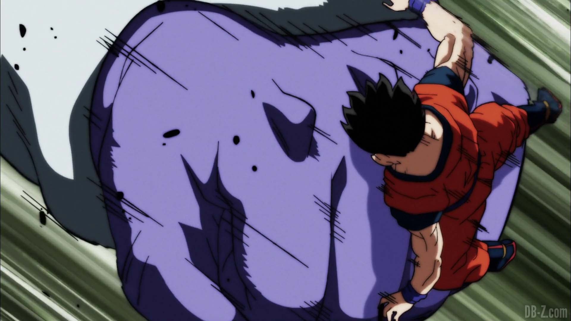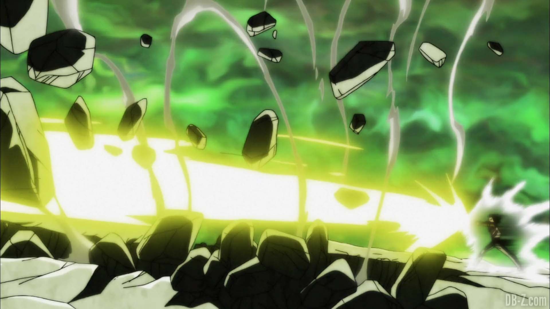 Synopsis 3 : Paparoni crie qu’il leur montrera la technique secrète ultime de l’Univers 3, et un flash intense enveloppe son corps. Goku, Gohan, Vegeta et les autres utilisent leurs mains pour se protéger de l’intense lumière, et C-17 et C-18 se baissent. Quand la lumière se dissipe et que leur vision revient, ils voient la forme gigantesque d’Aniraza.