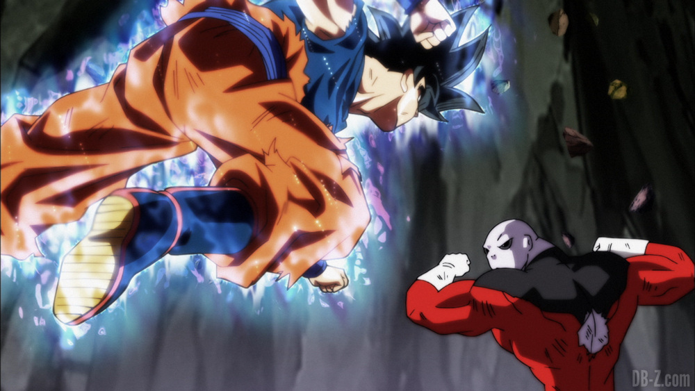 Synopsis : Incapable de s’opposer à Jiren, Goku est sur le point de se faire sortir quand il s’éveille à l’Ultra Instinct pour la troisième fois. Bien que Goku esquive les attaques de Jiren et frappe un grand coup, Jiren résiste. Jiren frappe fort et rapidement, ce qui est beaucoup trop pour que même Goku en Ultra Instinct puisse esquiver. Les deux enchaînent une bataille plus ou moins équilibrée. La pression des deux attaques fait que l’arène s’effrite de plus en plus. Des fissures commencent même à se former dans les sièges des spectateurs où les dieux sont assis. Alors que cette bataille continue, Jiren commence enfin à perdre son sang froid, et il élève son ki encore plus pour frapper Goku avec un coup de pleine puissance. Cependant, le ki de Goku ne baisse pas, mais au contraire augmente…?!