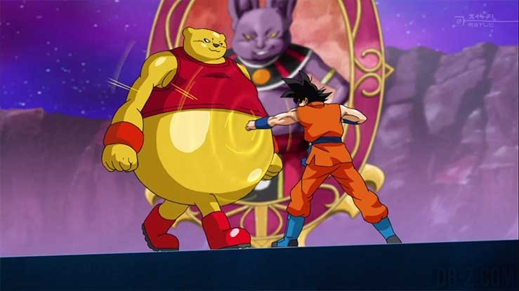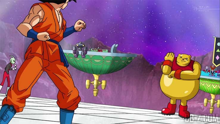Goku affronte Botamo pour le premier match d’ouverture du championnat. Malgré les attaques de Goku, Botamo ne subit aucun dégât et reste insensible. Goku cherche une faille sous les yeux de Beerus, Piccolo et Vegeta qui bout de colère. Finalement, Goku pousse Botamo et le traîne simplement hors du ring par les jambes.