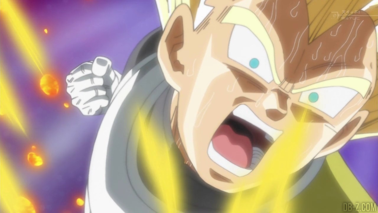 Vegeta a vaincu Frost grâce à une attaque sans pitié. Mais une nouvelle règle a été établie pour les prochains combats. Désormais, dès qu’un combattant touche la barrière, même dans les airs, il sera disqualifié. Le prochain opposant de Vegeta est Magetta. Avec son corps robuste et diverses attaques, il bloque Vegeta dans un coin. Il dégage de la vapeur et Whis fait remarquer que c’est la barrière qui empêche la vapeur de s’échapper. Beerus pense que Champa a tout manigancé, mais Vados fait remarquer que la barrière a des ventilations.